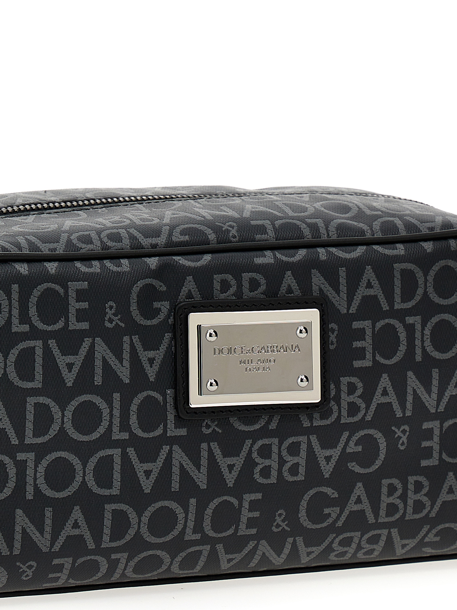 Шкіряна косметичка з логотипом на передній частині, застібкою-блискавкою та ручкою.