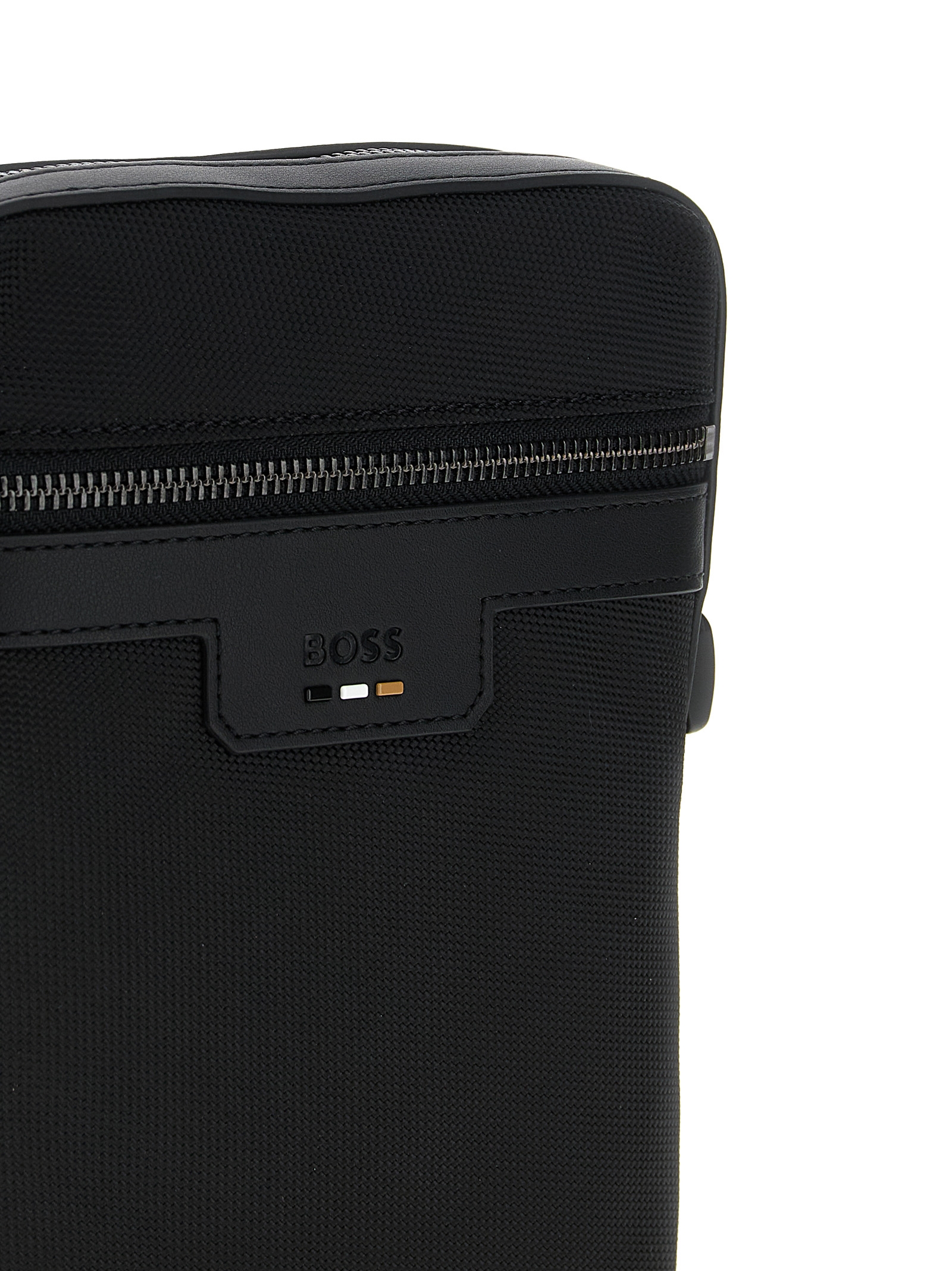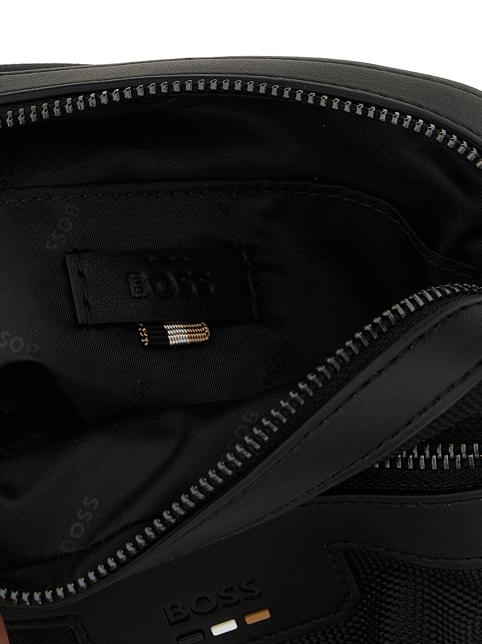 Сумка через плече «Ray» з тканини «соти» з деталями з шкіри в тон, верхньою застібкою-блискавкою, тисненням логотипу та передньою кишенею на блискавці, регульованим ременем через плече.
