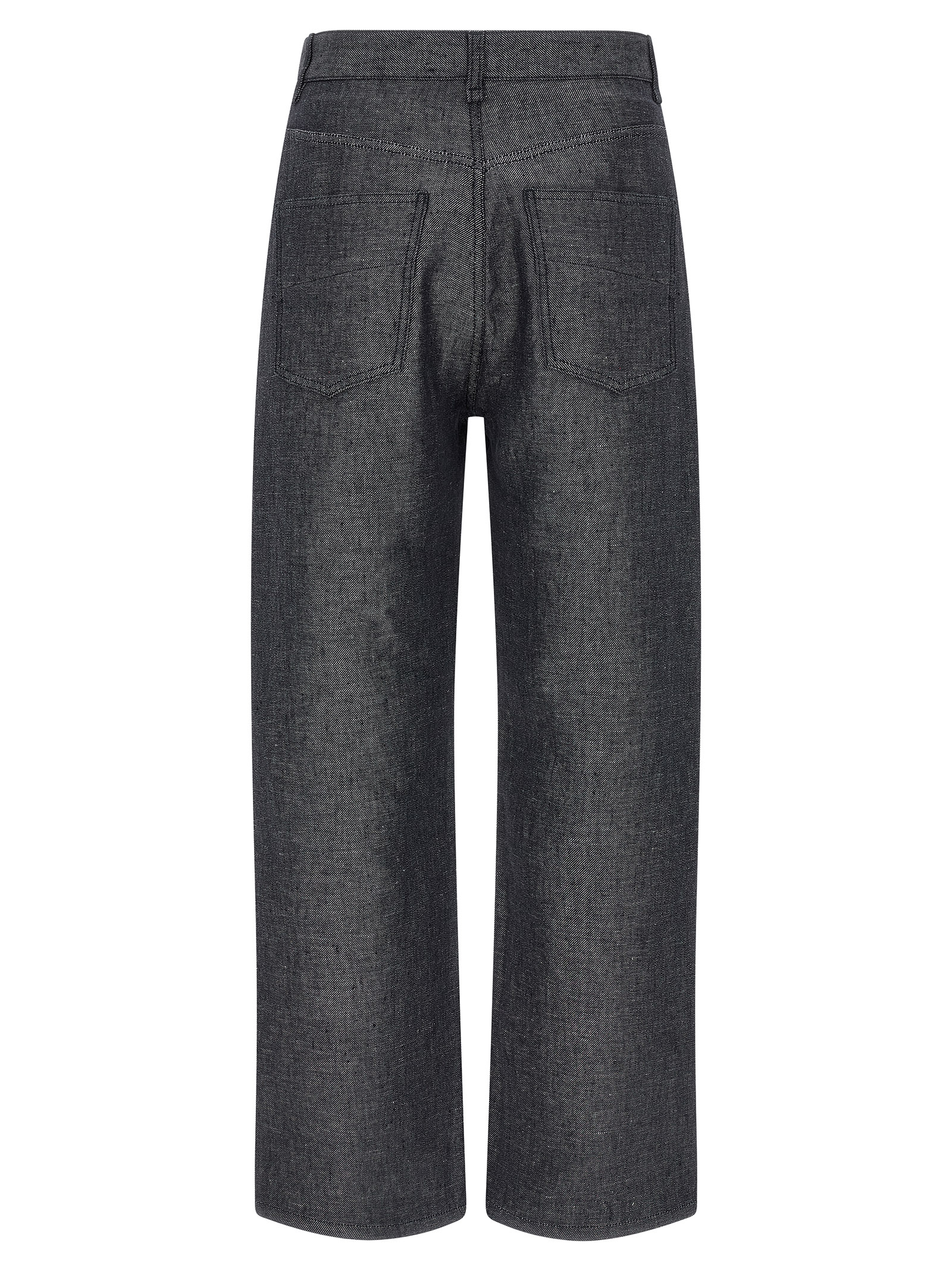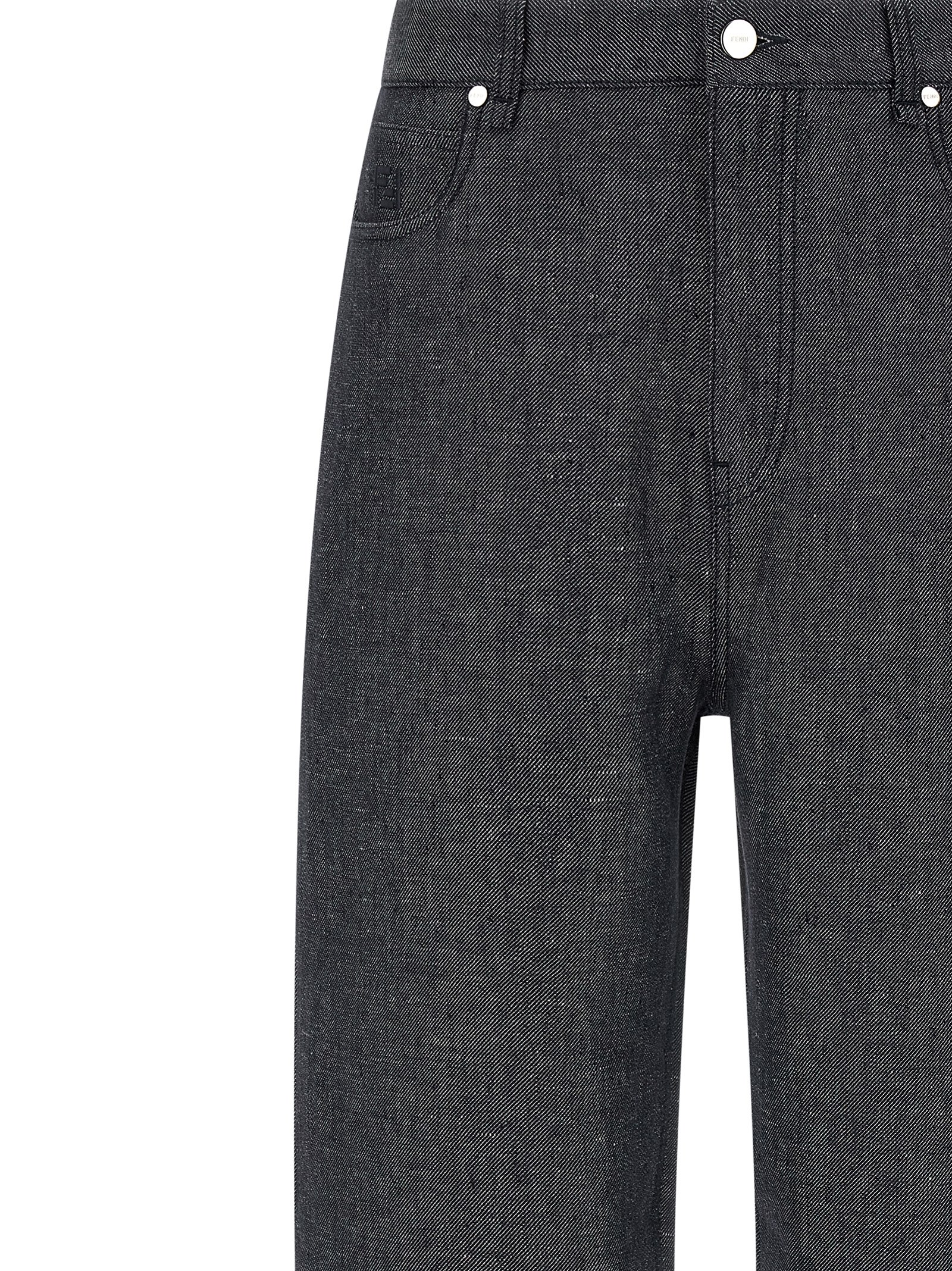 Jeans in denim fabric, metal rivets with palladium finish, low crotch, tone-on-tone 'FF Selleria' embroidery on the front, wide and straight leg, zip and front button closure, five pockets.