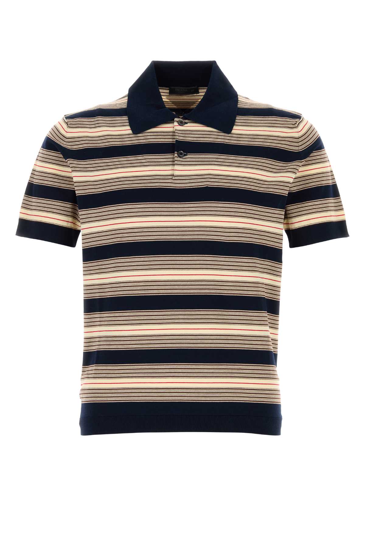 Embroidered stretch cotton blend polo shirt Blue PRADA (UMF064SOOO17O6)