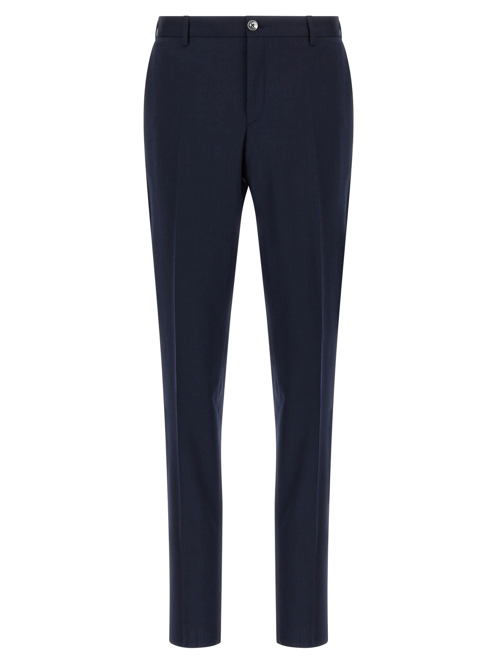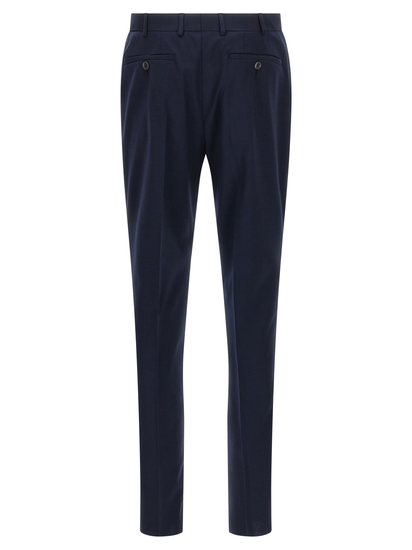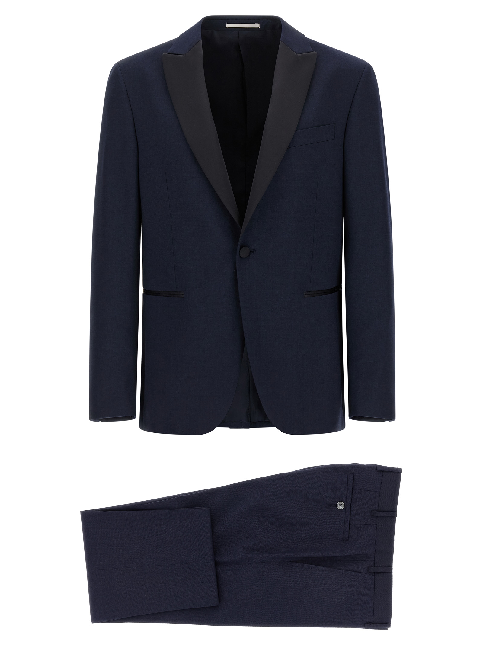 Шерстяне плаття linea Cerimonia, що складається з однобортного блейзера з одним ґудзиком, контрастними атласними деталями, гострими лацканами, нагрудною кишенею, накладними кишенями, віскозною підкладкою, двома внутрішніми кишенями, манжетами з петлями, розрізами ззаду та випрасуваними штанами зі складками, передніми кишенями «американе», задніми кишенями з вилогами, застібкою на блискавці та ґудзику спереду, віскозною підкладкою.