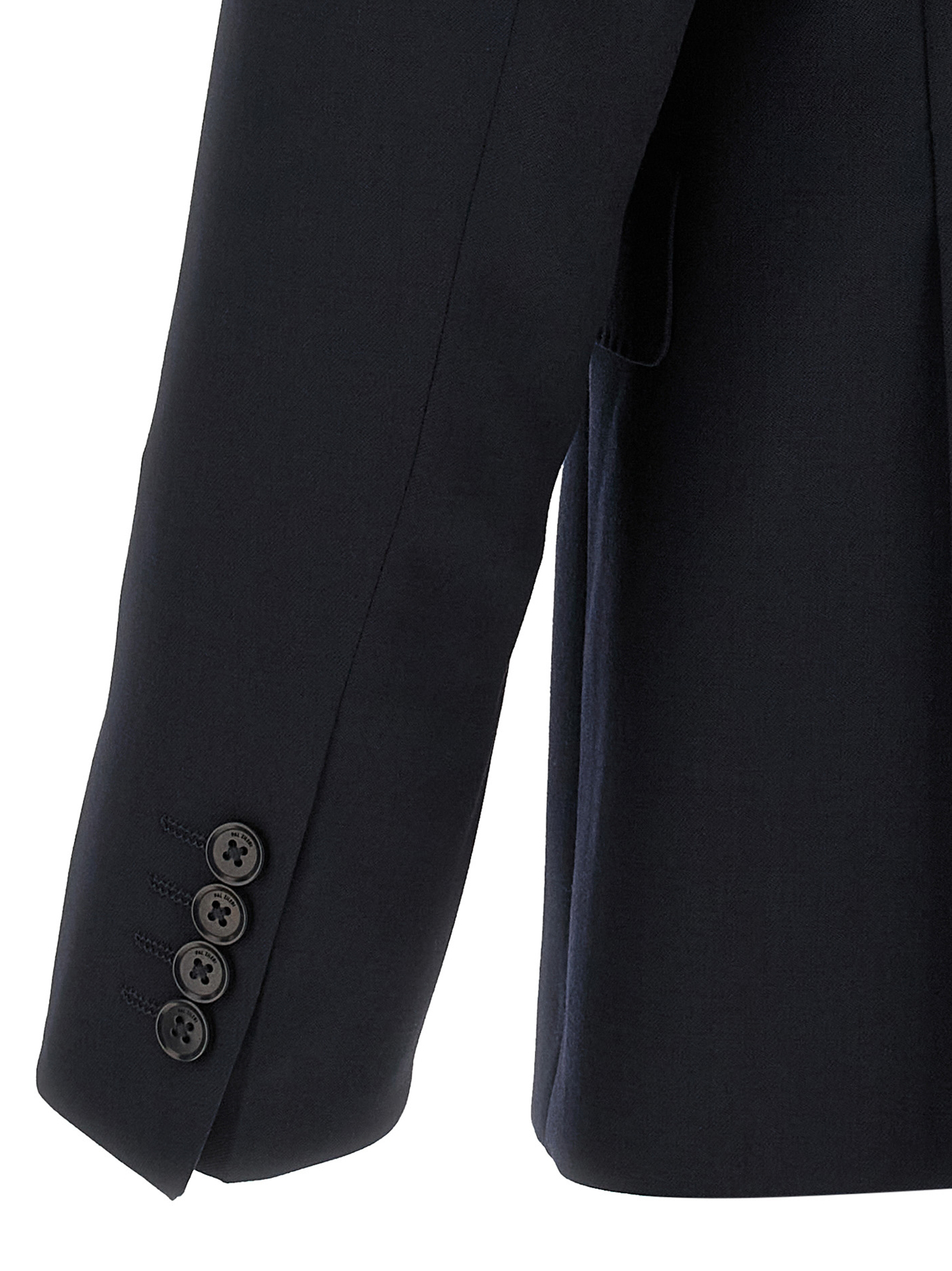 3-компонентне плаття «Lord» з еластичної вовни, що складається з: - однобортного блейзера з застібкою на ґудзиках спереду, дзеркальними лацканами зі знімною металевою брошкою, нагрудною кишенею, кишенями з клапанами, підкладкою з купро, двома внутрішніми кишенями, манжетами з отворами для ґудзиків, шліцами ззаду;