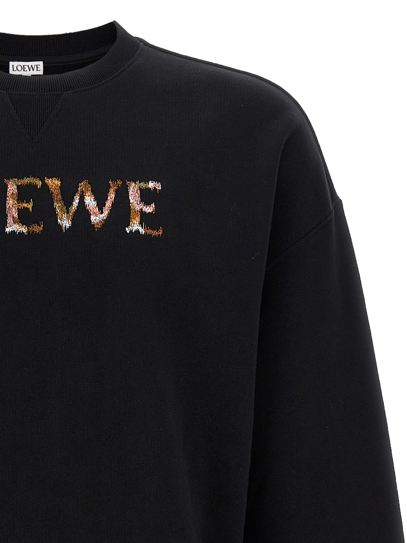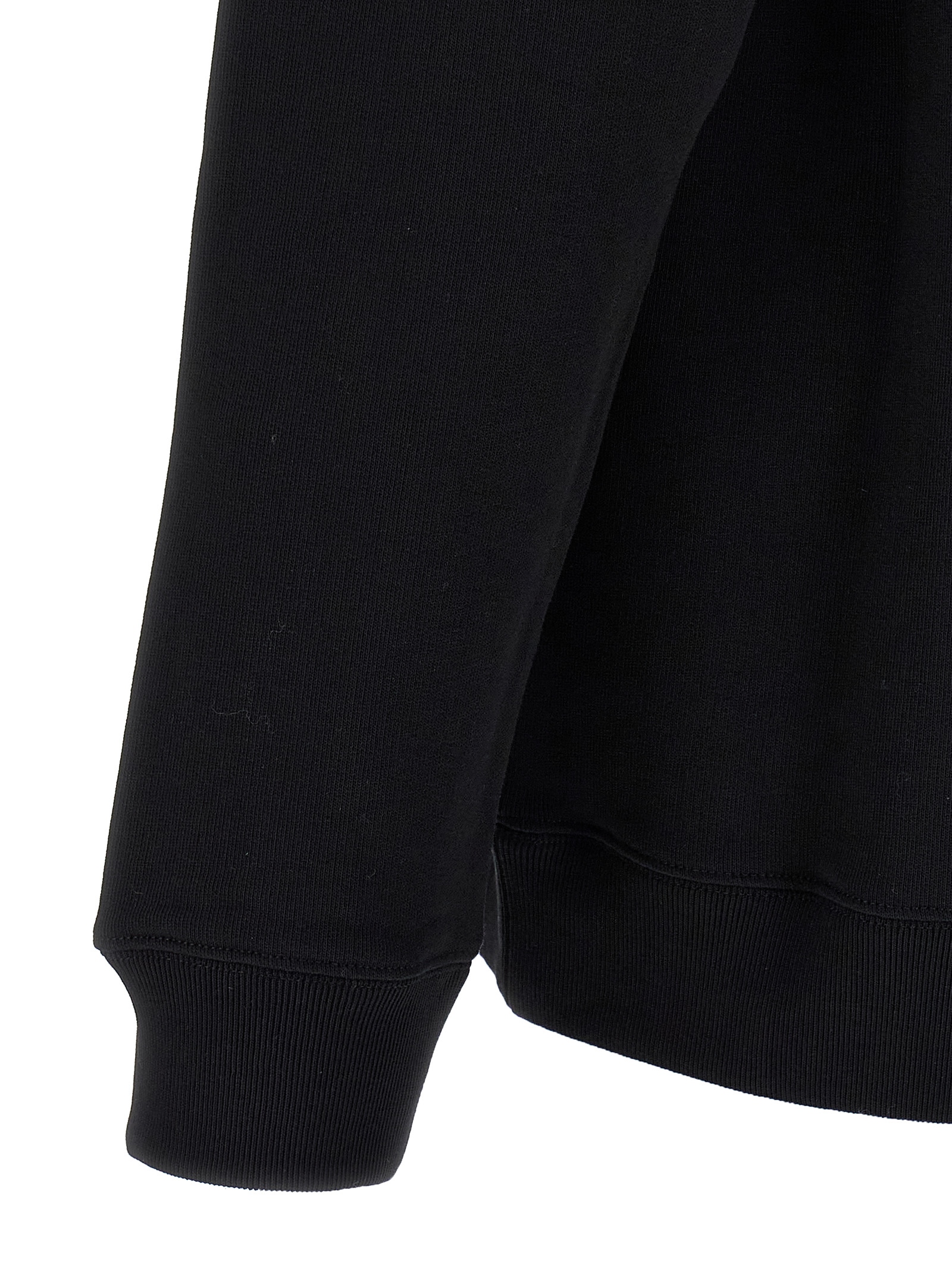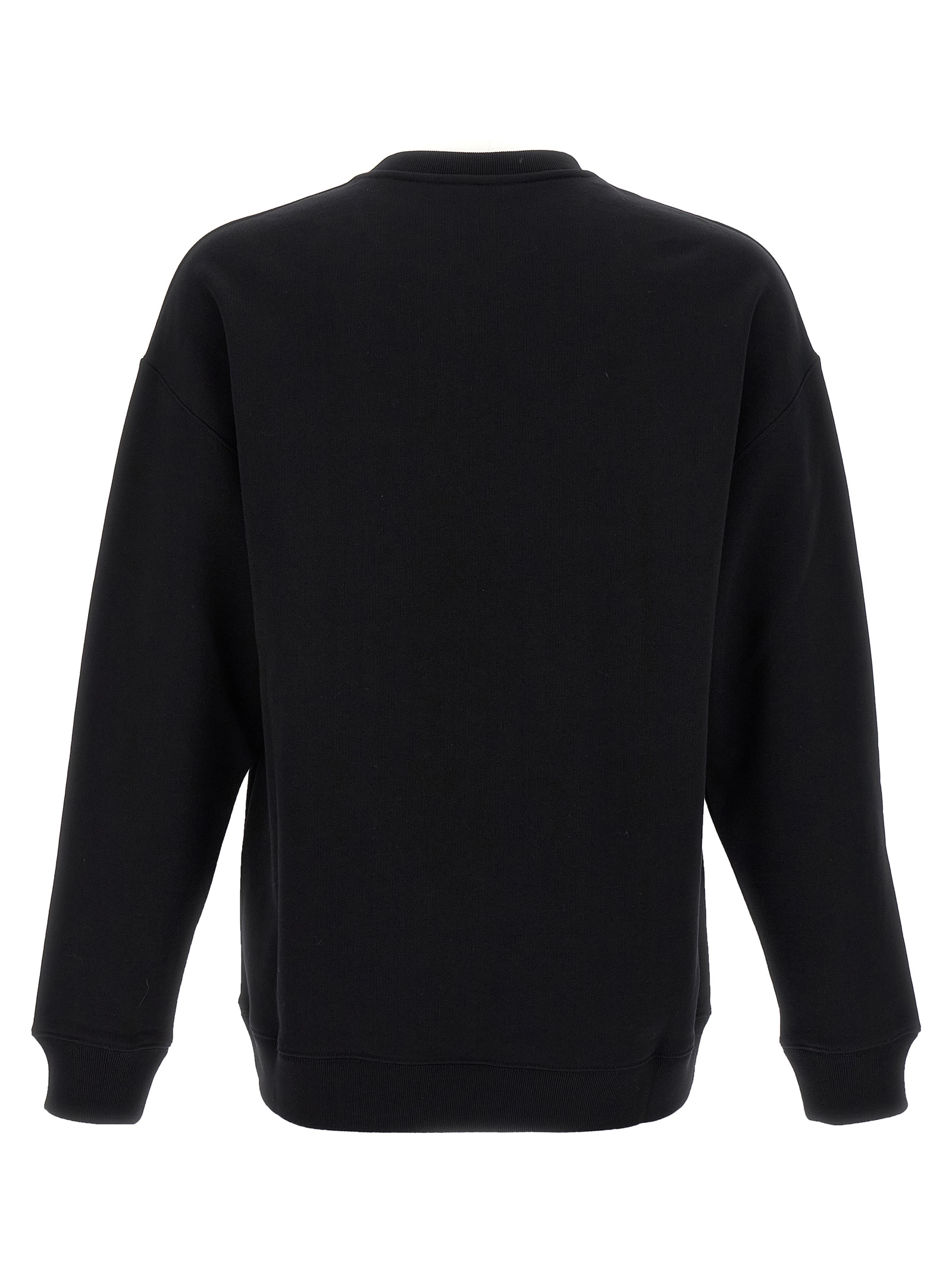 Бавовняна кофта середньої ваги, вишивка логотипу різними нитками на передній частині, кругла горловина, довгі рукави з манжетами та опущеними плечима.
