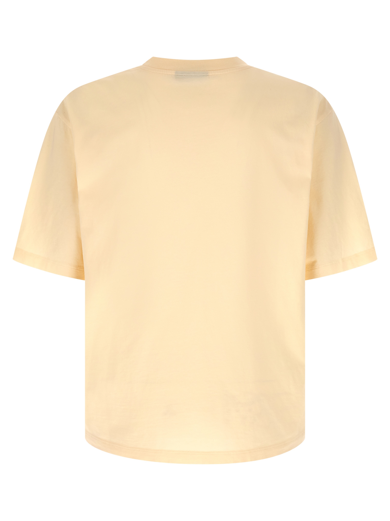 Бавовняна футболка з джерсі, принт спереду, круглий виріз, бокові розрізи, асиметричний низ.