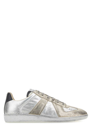 Срібні шкіряні кросівки Replica MAISON MARGIELA (S97WS0083P7451)