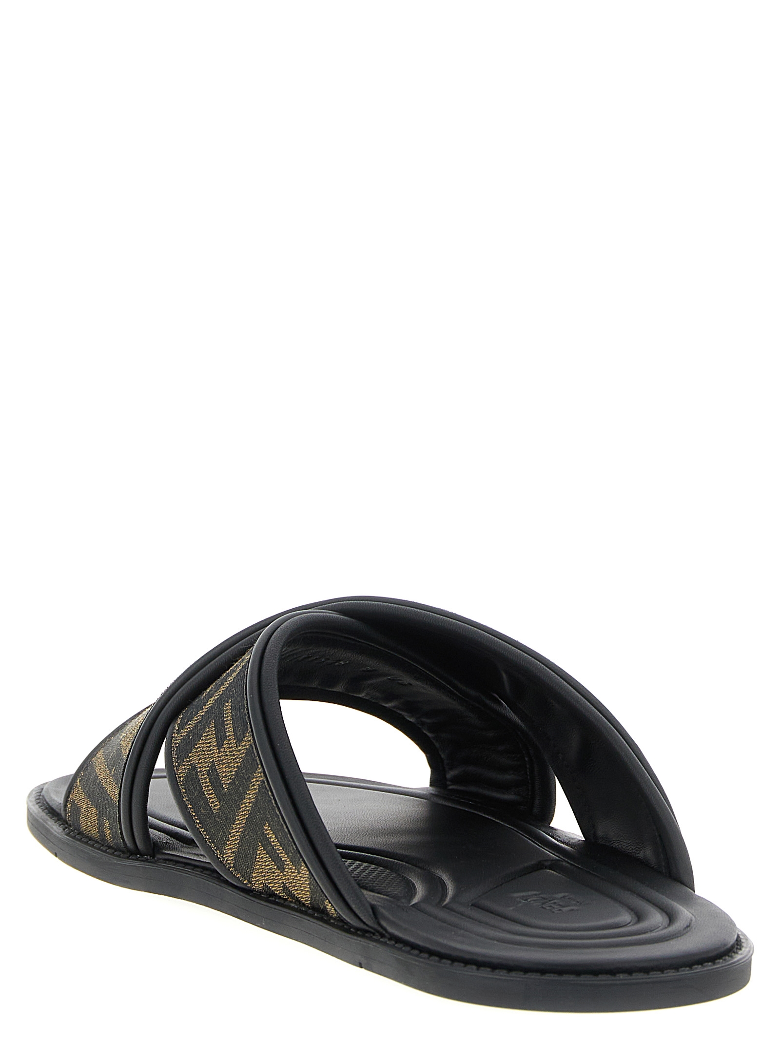Слайди з логотипом з подвійною перехрещеною смугою, жакардовим логотипом «FF» та контрастною вишивкою «Fendi Roma».