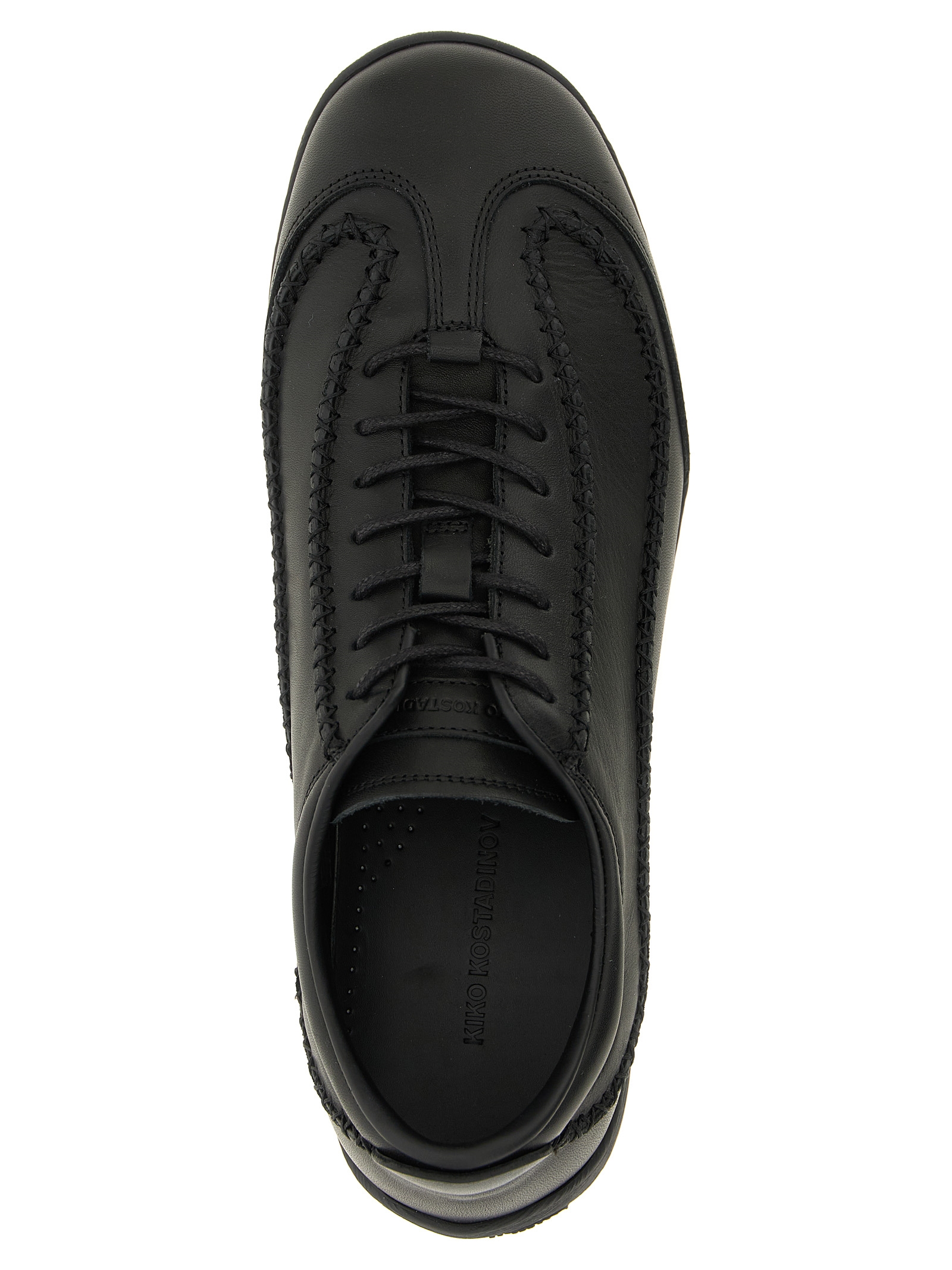 'Sargo' full-grain calf leather sneakers with woven details, lace-up closure, tone-on-tone rubber sole with traditional Bulgarian engraved motifs.