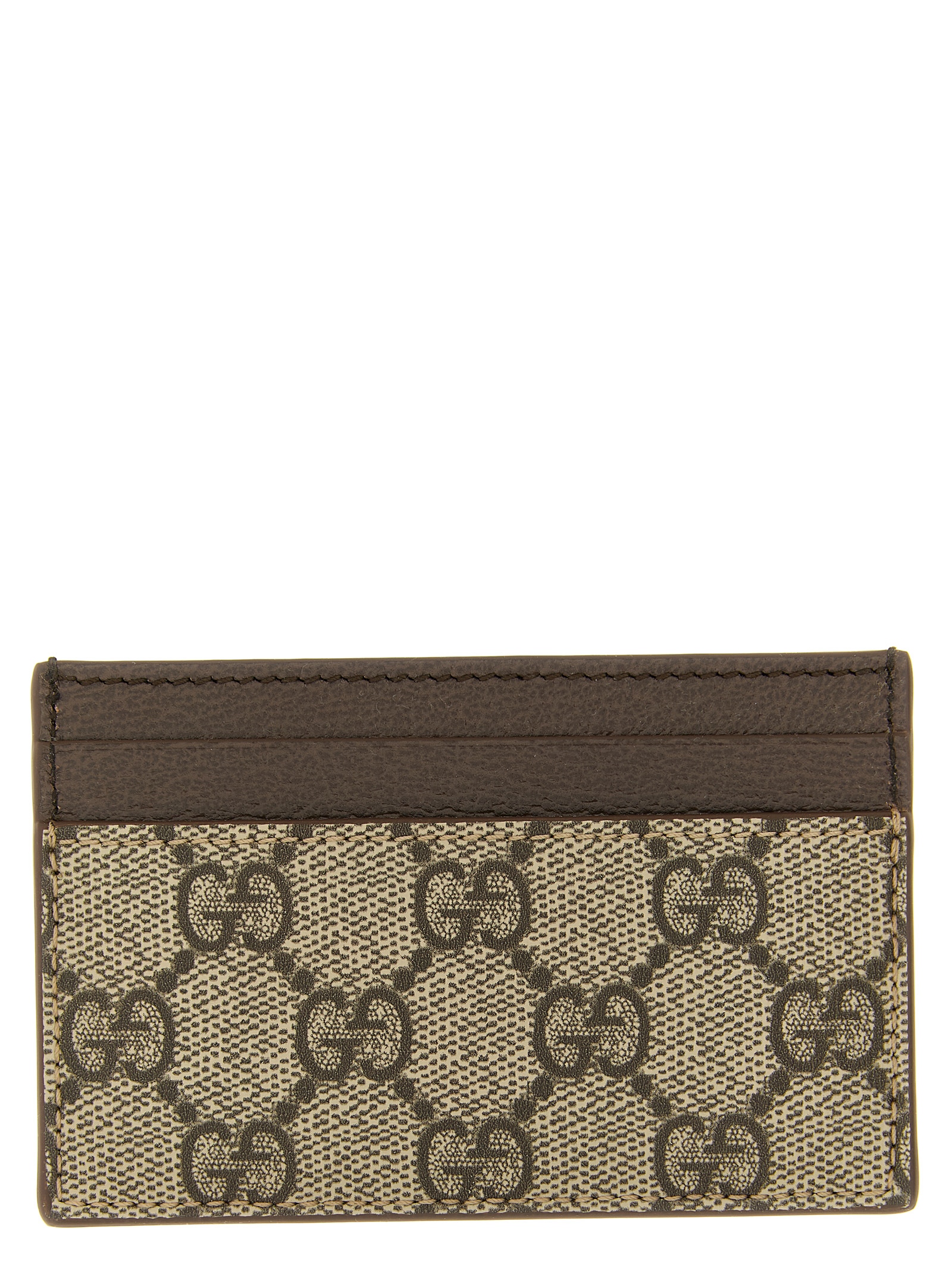GG Supreme fabric and smooth leather card holder with brass GG logo detail with ceramic effect finish.