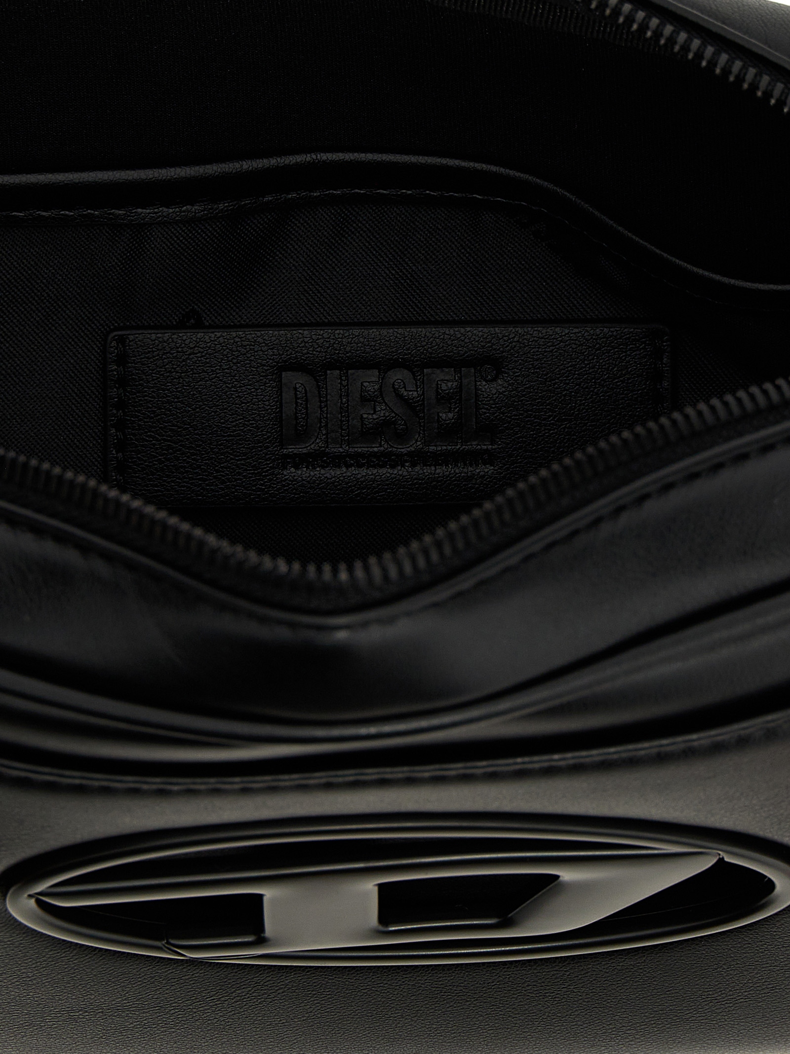 'Holi-D' leather-effect fabric crossbody bag with neoprene lining, front inlaid metal Oval D detail, zip closure, adjustable and removable shoulder strap.