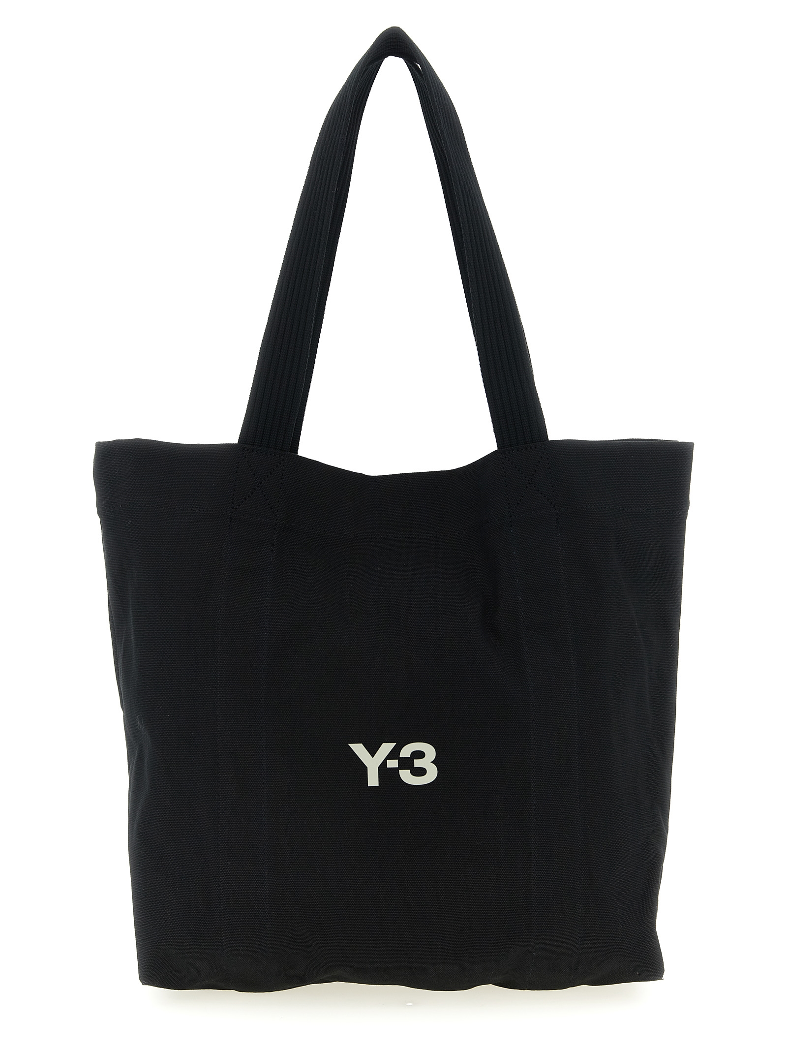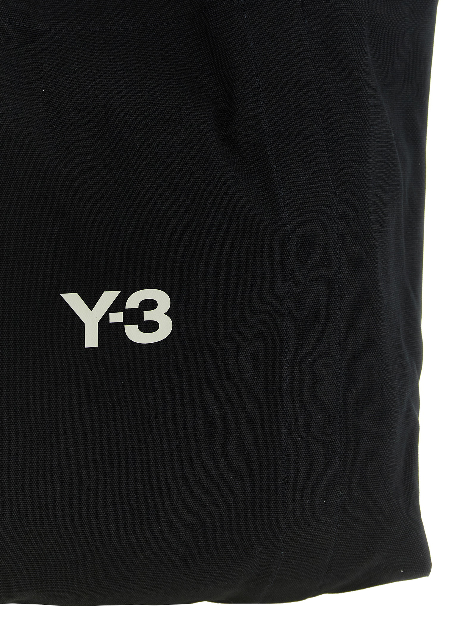 Durable canvas shopping bag with front 'Y-3' logo print, double fixed handle, magnetic closure.