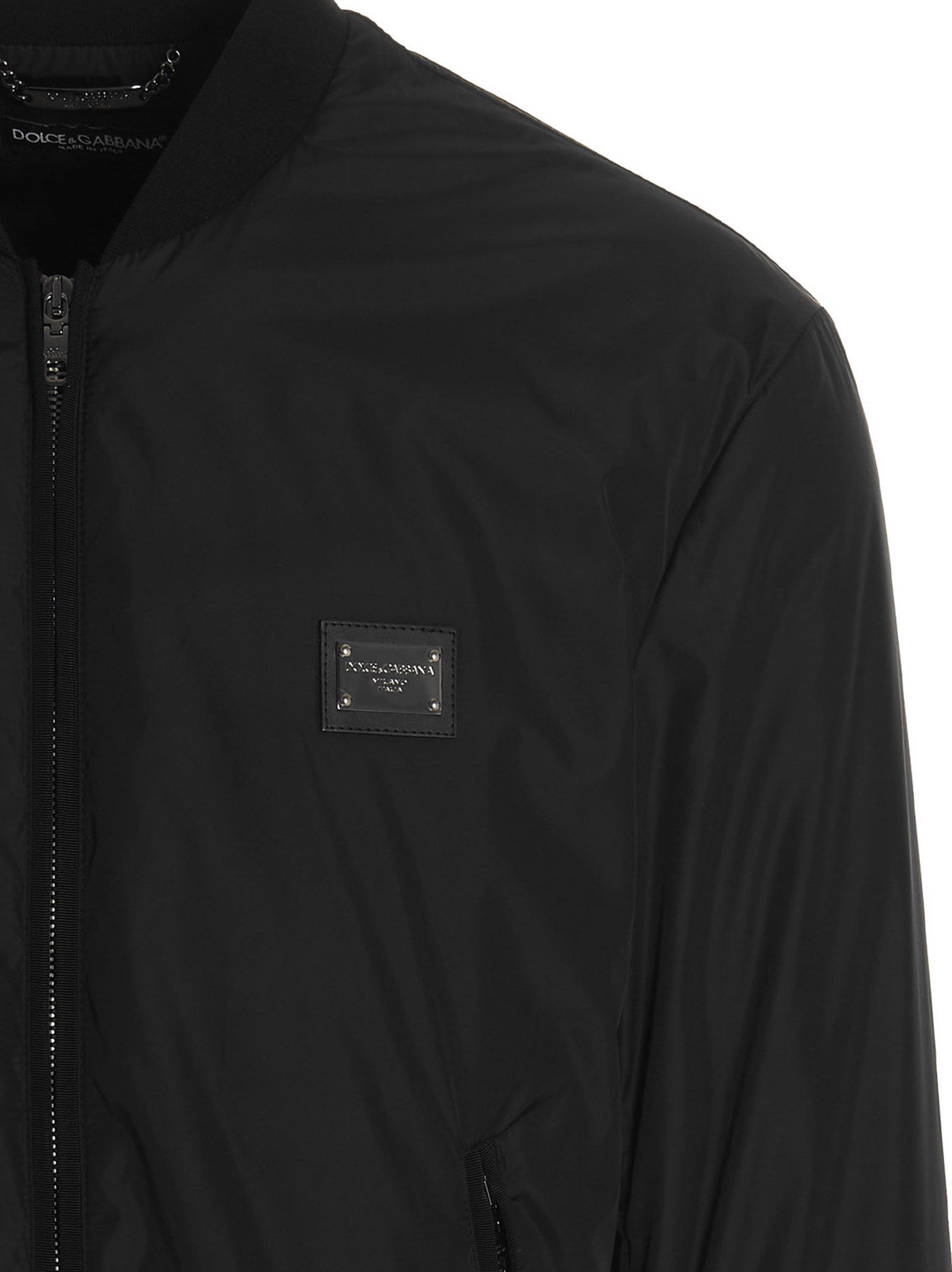 DG Essential' nylon bomber jacket with zip closure, front logo plaque, pockets, long cuffed sleeves, knitted collar and bottom hem.