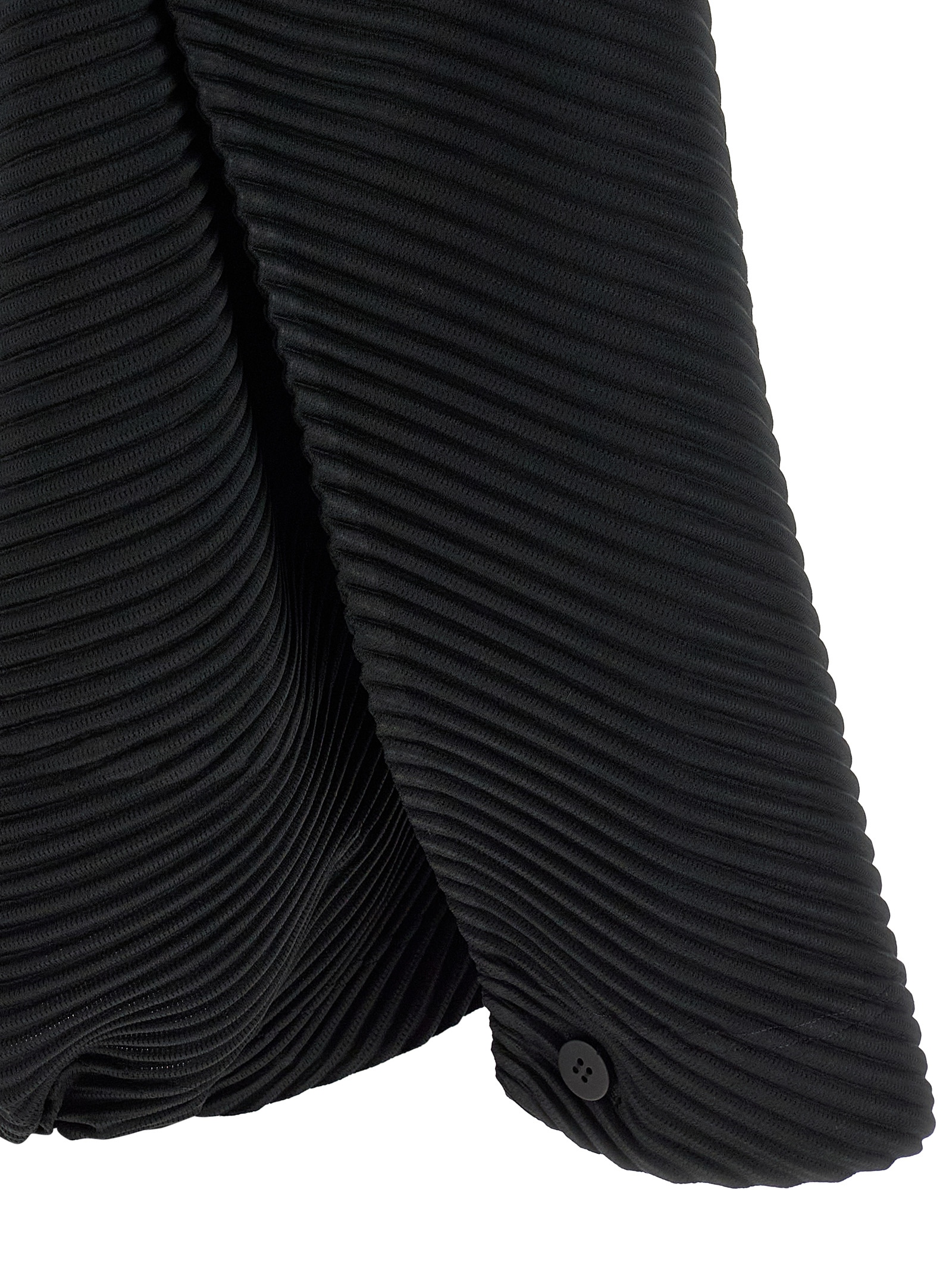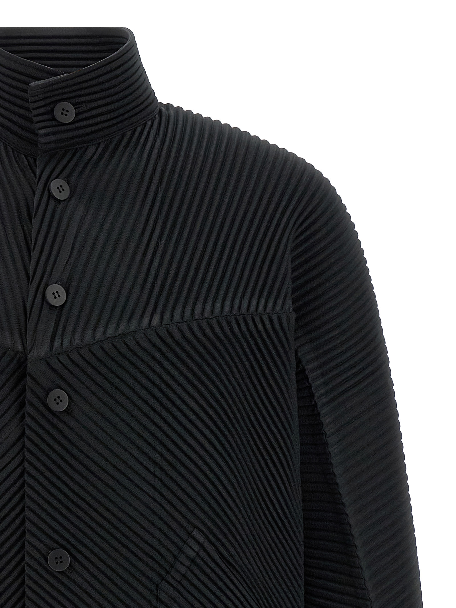 Monthly Colors: September blouson jacket in pleated fabric with standing collar, front button closure, and pockets.