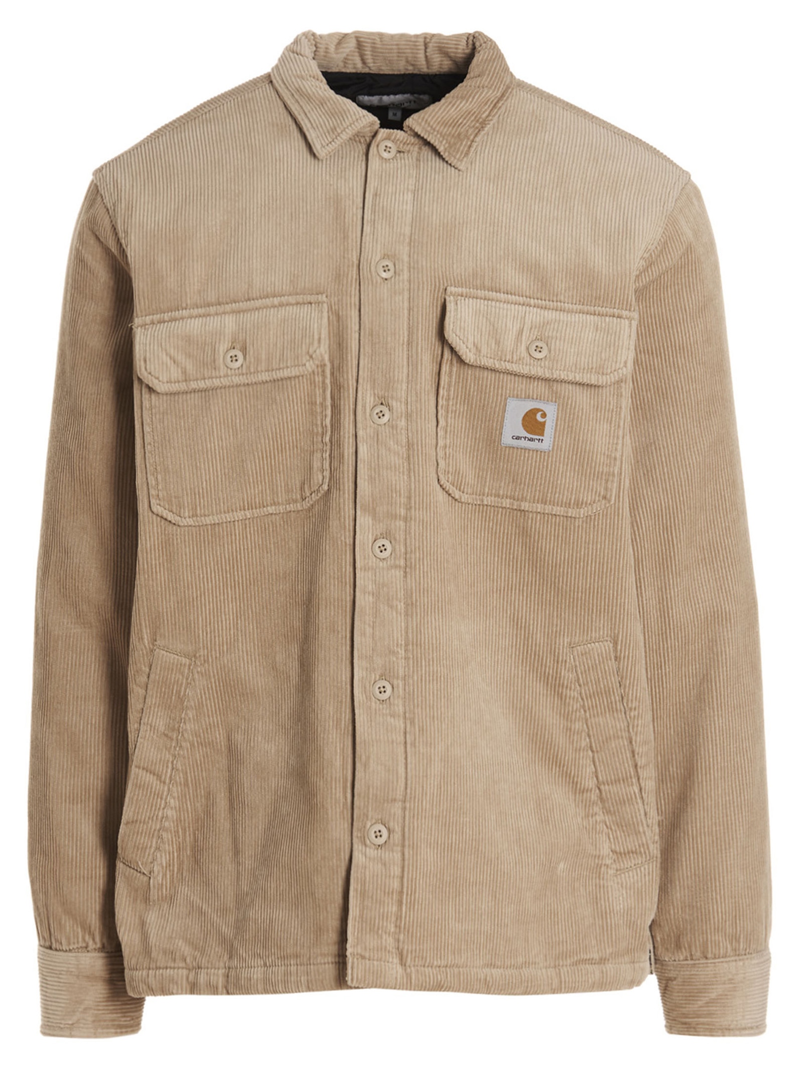 Whitsome overshirt in corduroy, quilted and lightly padded nylon taffeta lining, shirt collar, logo patch and front button closure, pockets, long sleeves with cuffs and slightly dropped shoulders.