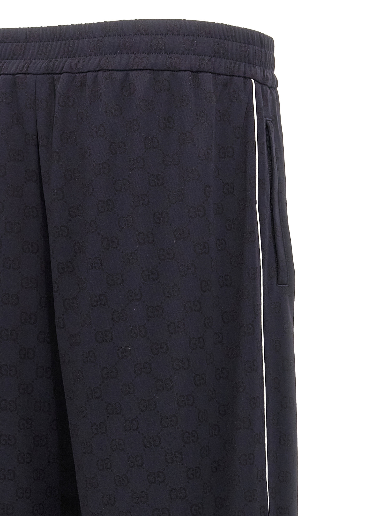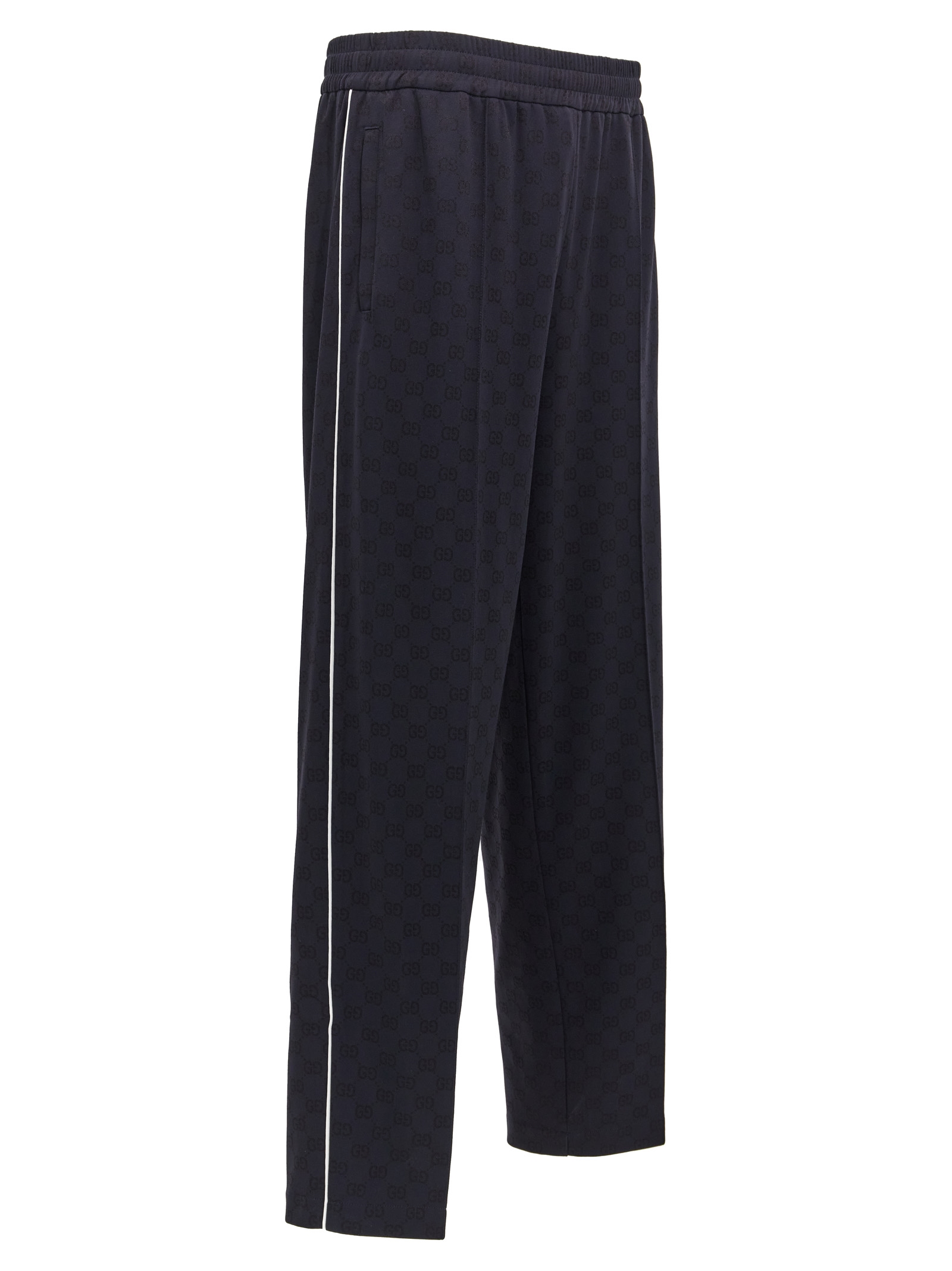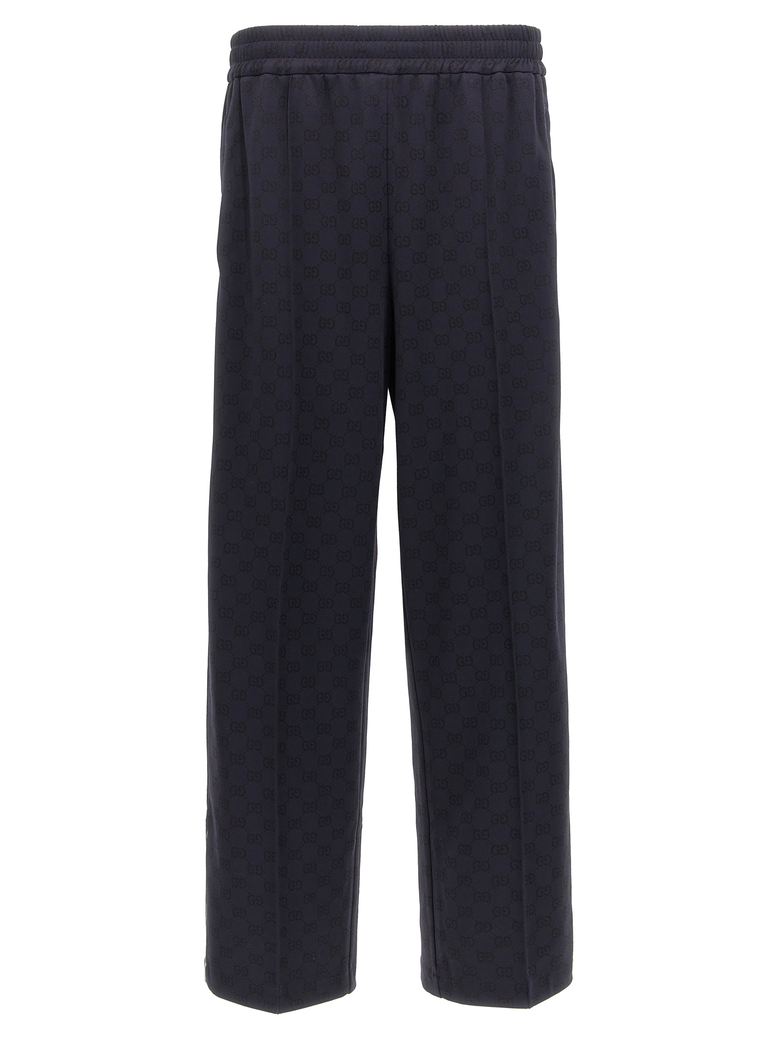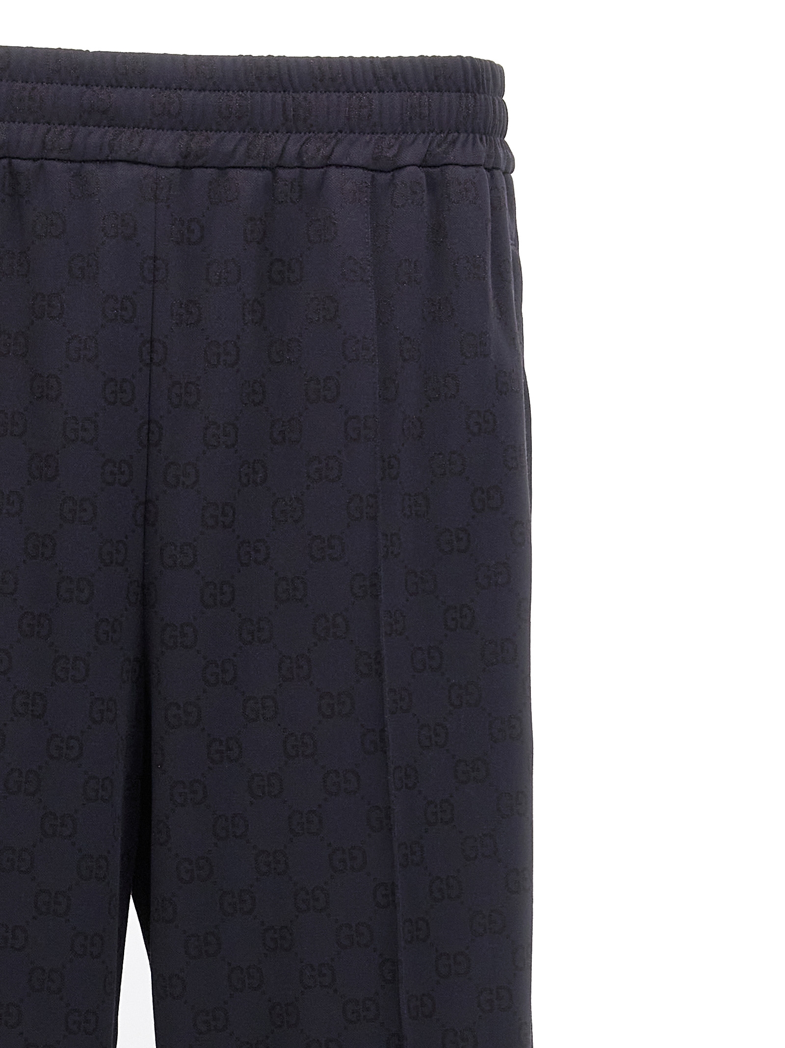 Joggers in GG jacquard technical cotton nylon and jersey blend, adjustable drawstring elastic waistband, pockets, wide and straight leg.