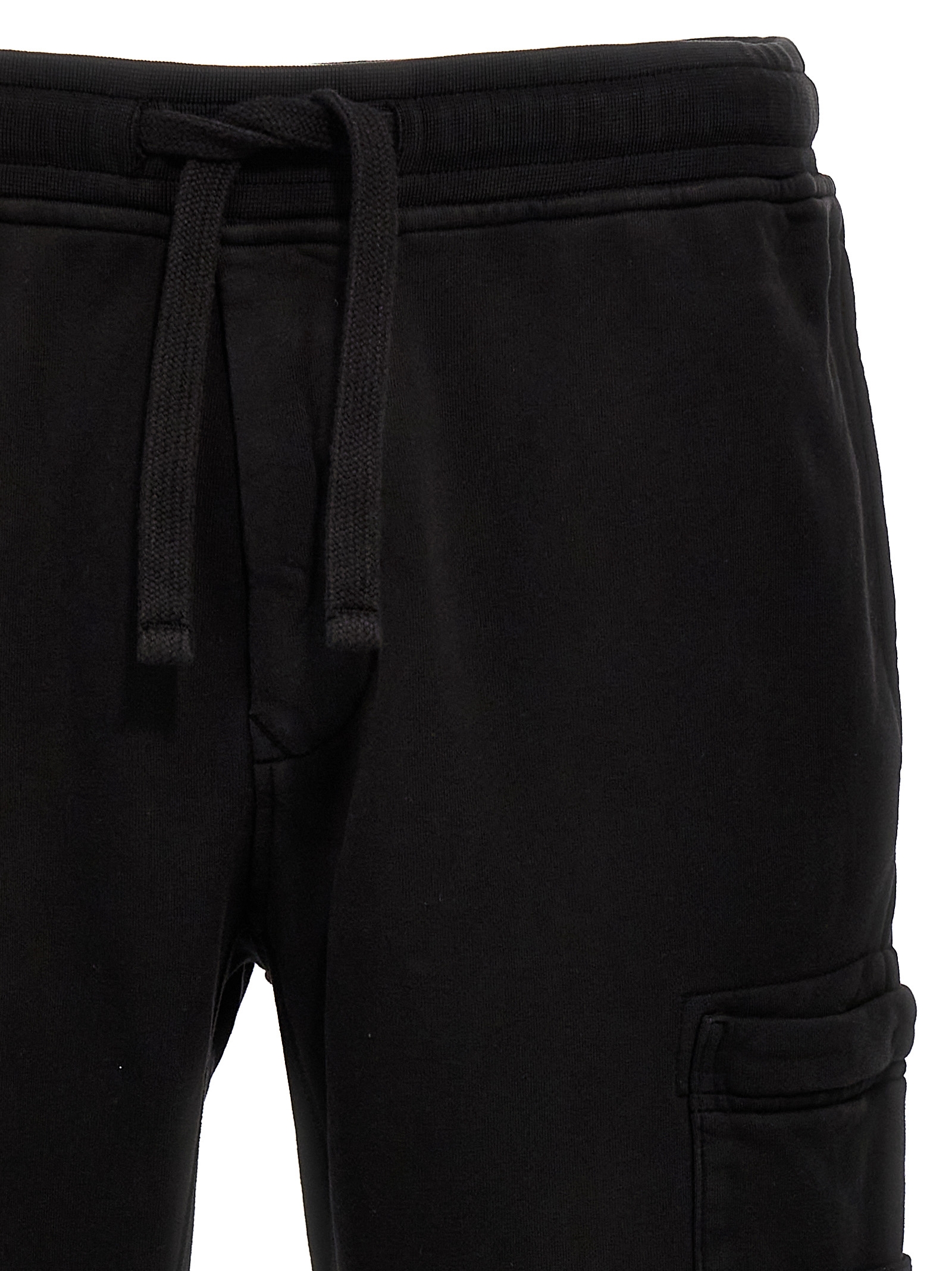Brushed cotton joggers with adjustable drawstring elastic at the waist, pockets, side logo badge appliqué, ankle cuffs.