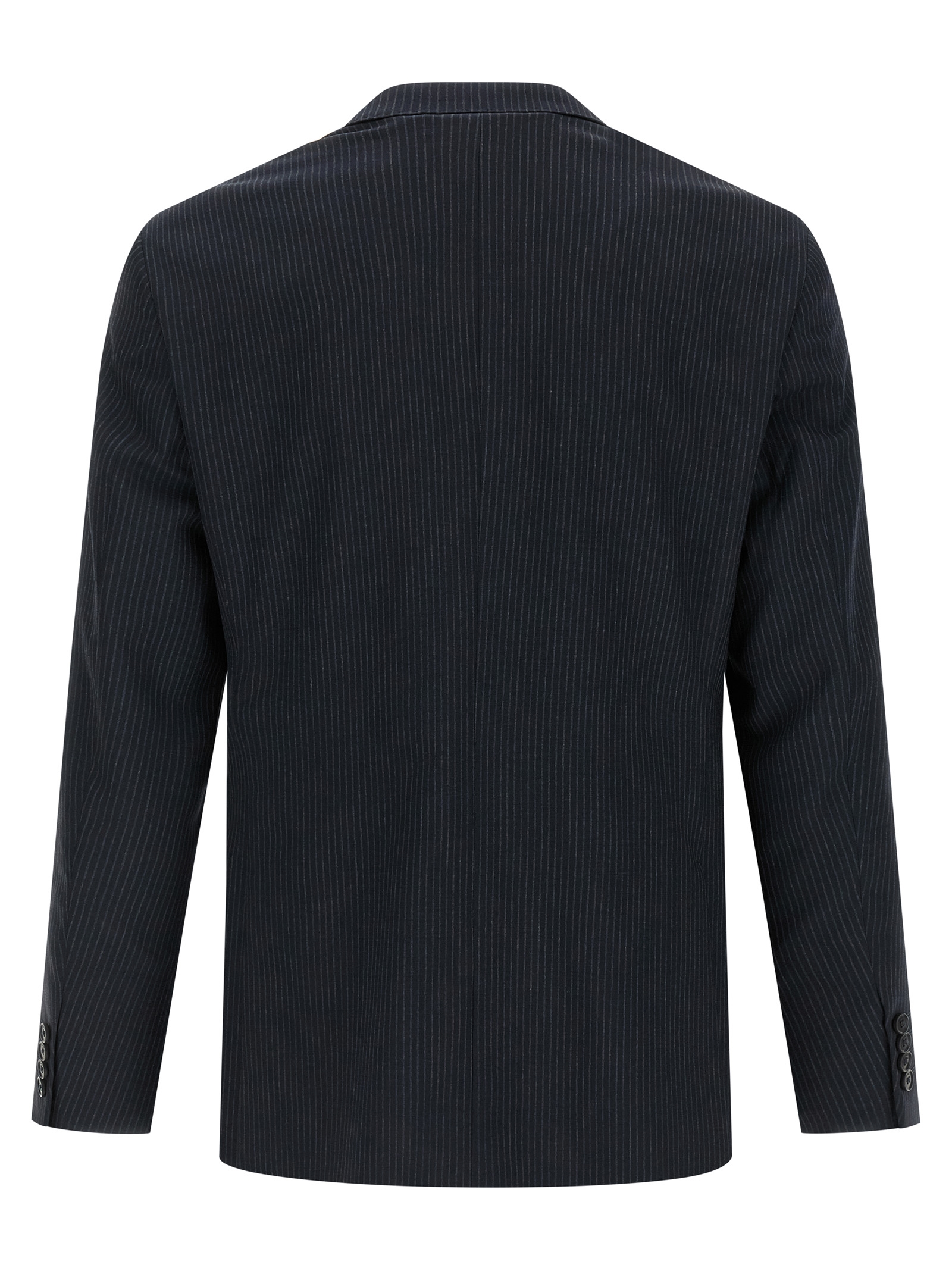 'Lord' dress in viscose blend and wool with pinstriped pattern consisting of single-breasted blazer with front button closure, mirror lapels with removable metal brooch, breast pocket, flap pockets, cupro lining, two inner pockets, structured shoulder strap, cuffs with opening buttonholes, back slits and trousers with stretched pleat, front pockets 'americane', back welt pockets, front zip and button closure, viscose lining.