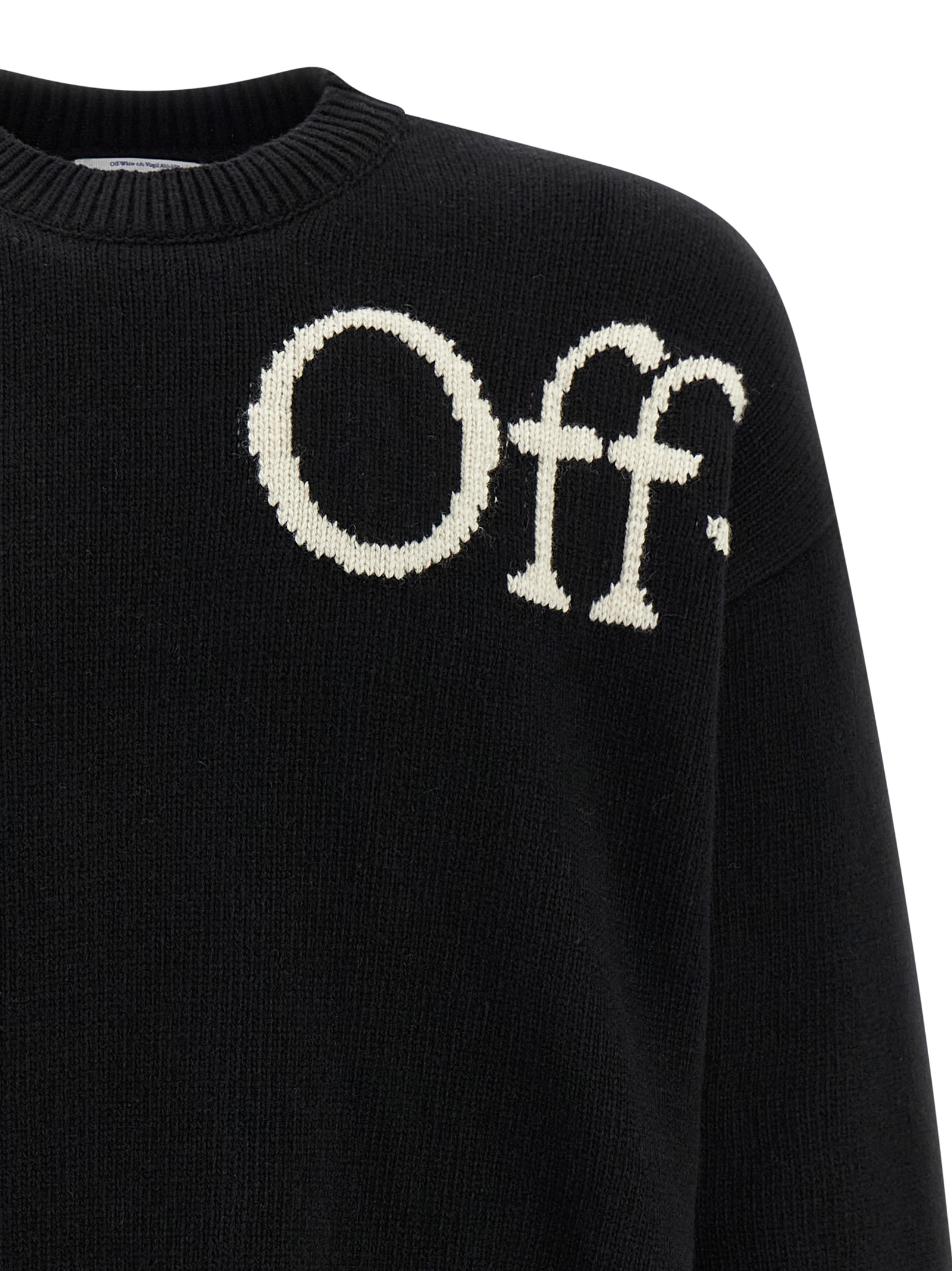 Bookish' wool blend sweater with contrast logo intarsia on the front and back, crew neck, long cuffed sleeves and dropped shoulders.