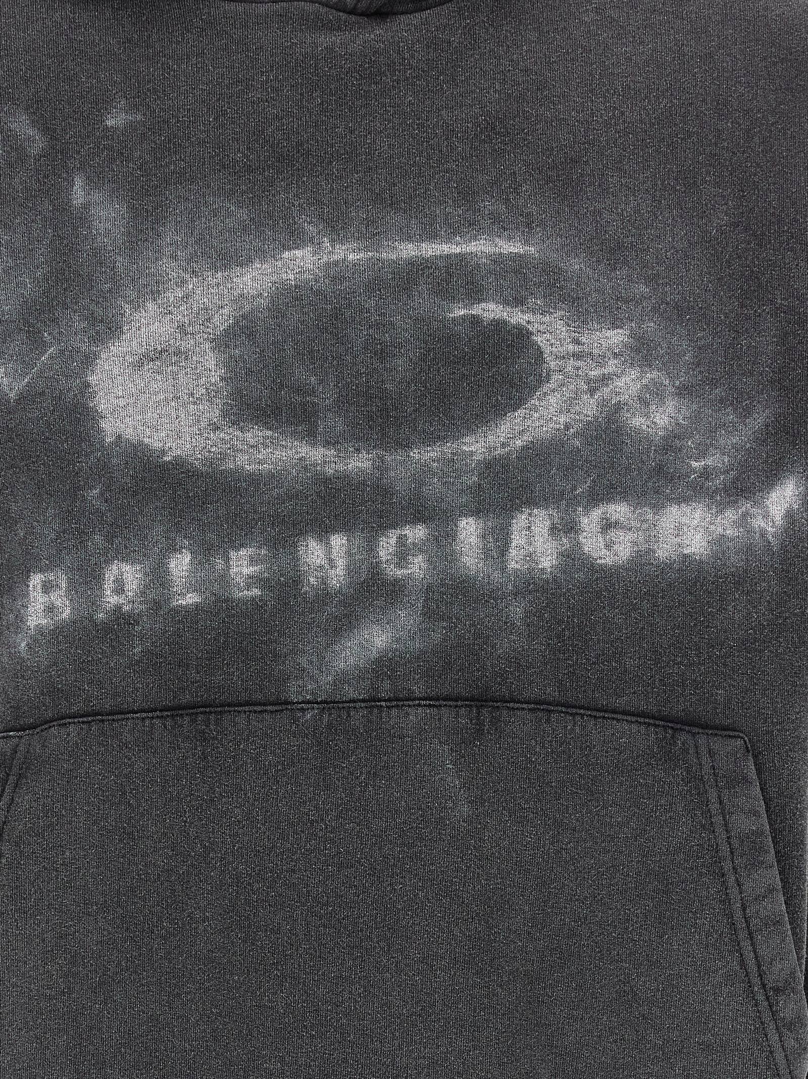 Dry washed-effect fleece hoodie with wrinkled effect, front 'Washed Crayon Loop' print, kangaroo pocket, long cuffed sleeves and dropped shoulders.