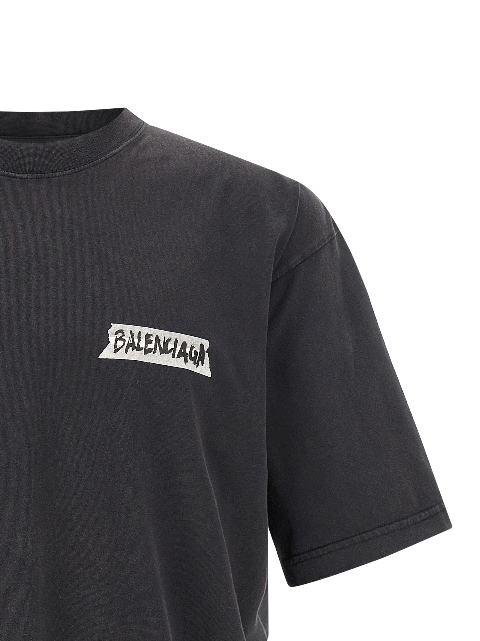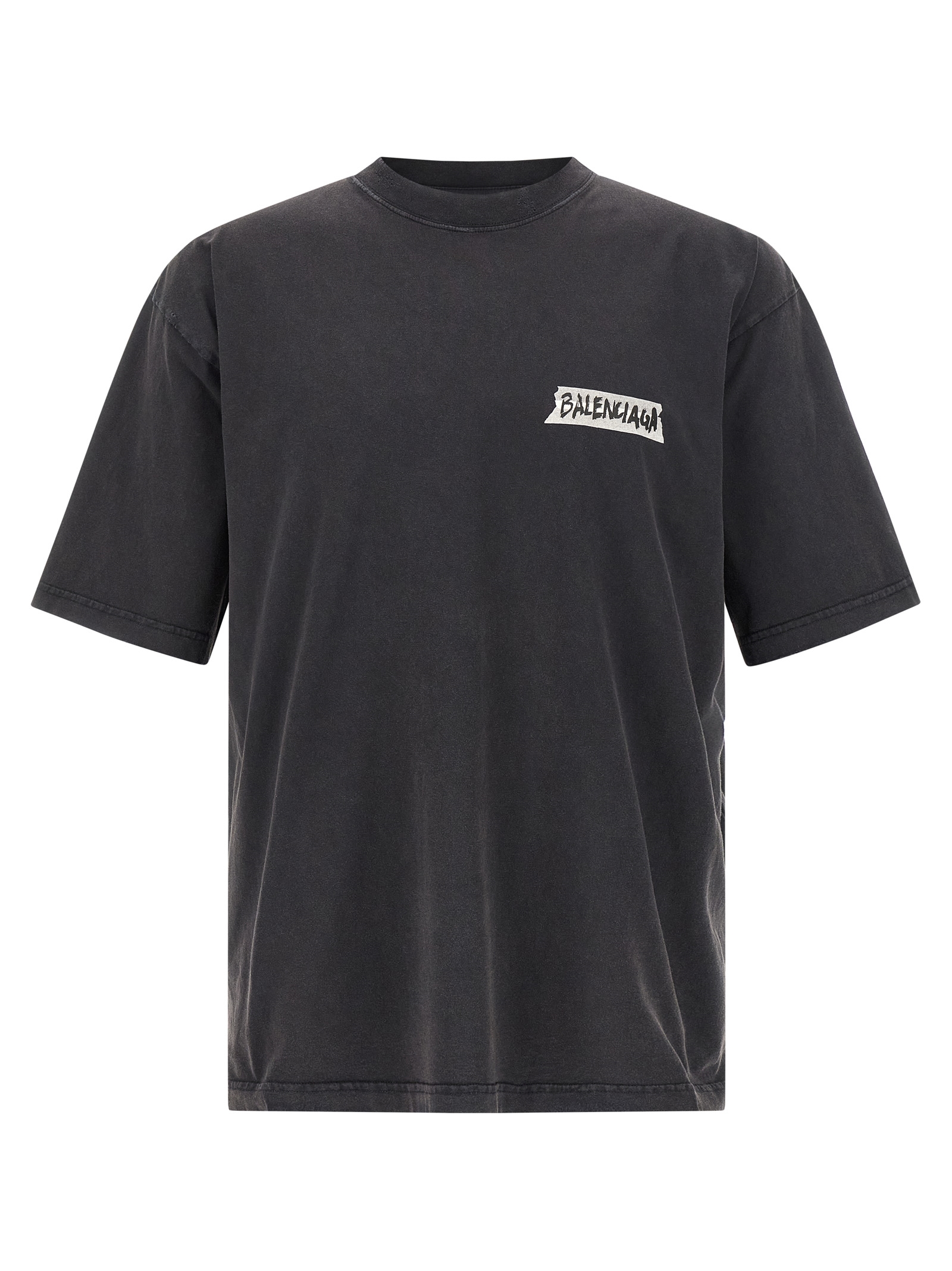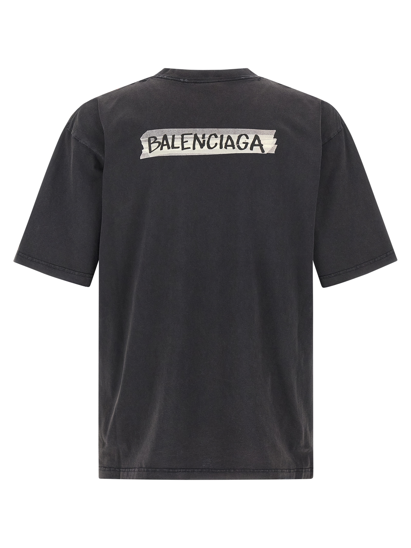 Dry jersey faded T-shirt, 'Masking Tape' print on the front and back, crew neck, short sleeves with dropped shoulders.