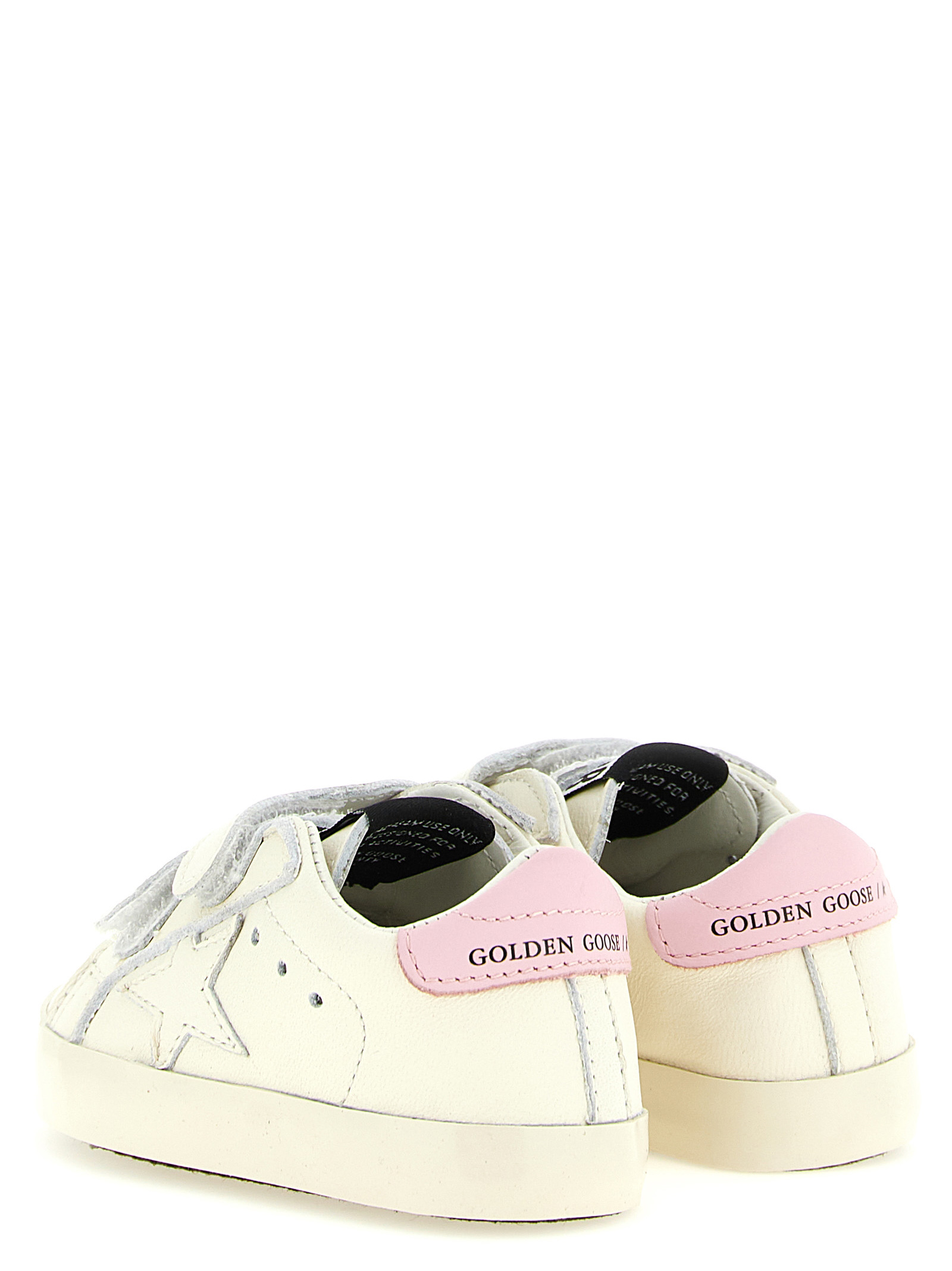 Sneaker + socks set 2-pack 'Baby School' consisting of leather sneakers, contrast embossed logo heel, adjustable velcro straps, rubber sole and 2-pack cotton socks with ribbed detail and inlay logo.