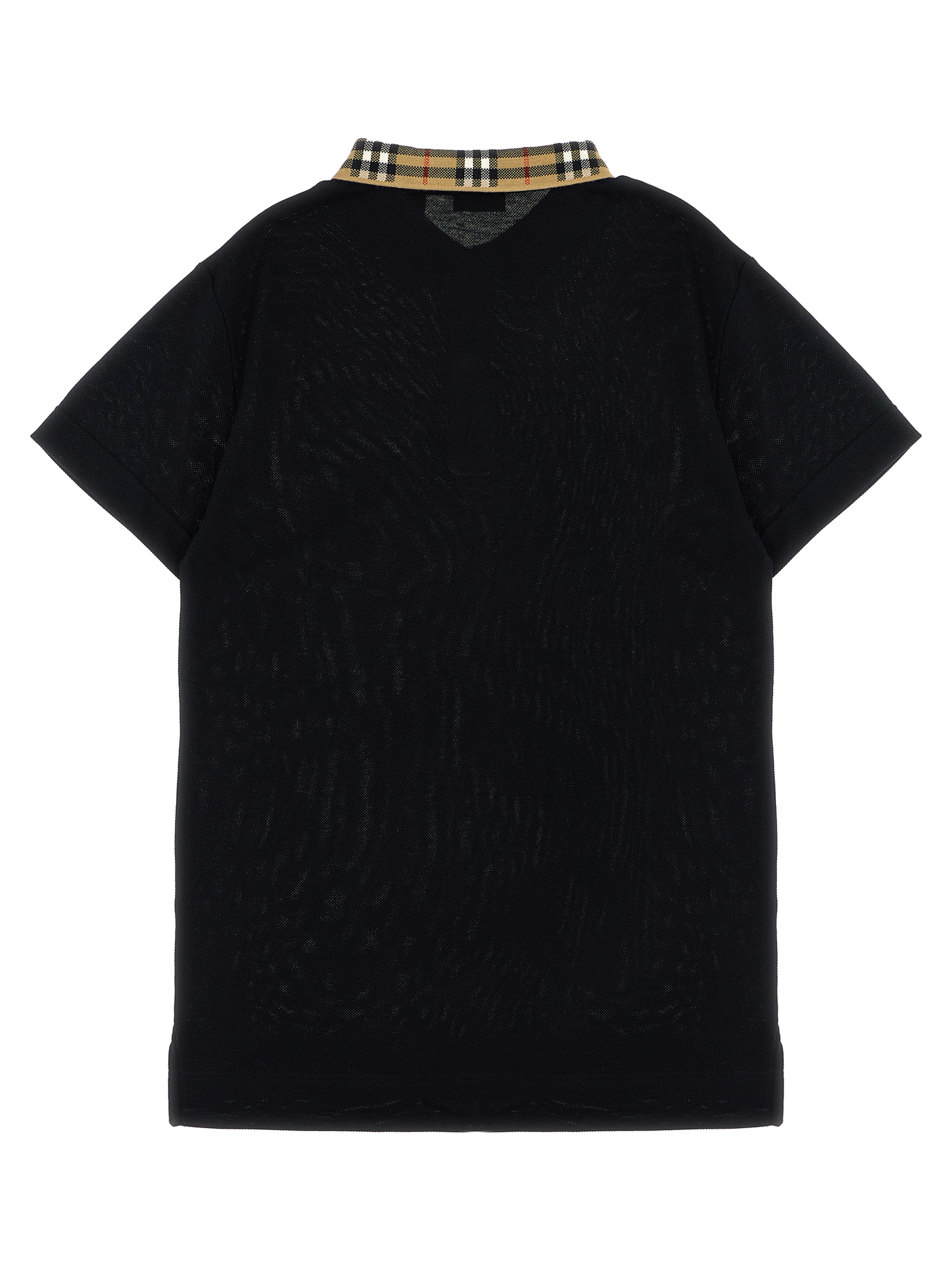 'Johane' cotton piqué polo shirt with 'Burberry Check' print collar and buttons, short sleeves, asymmetrical hem.
