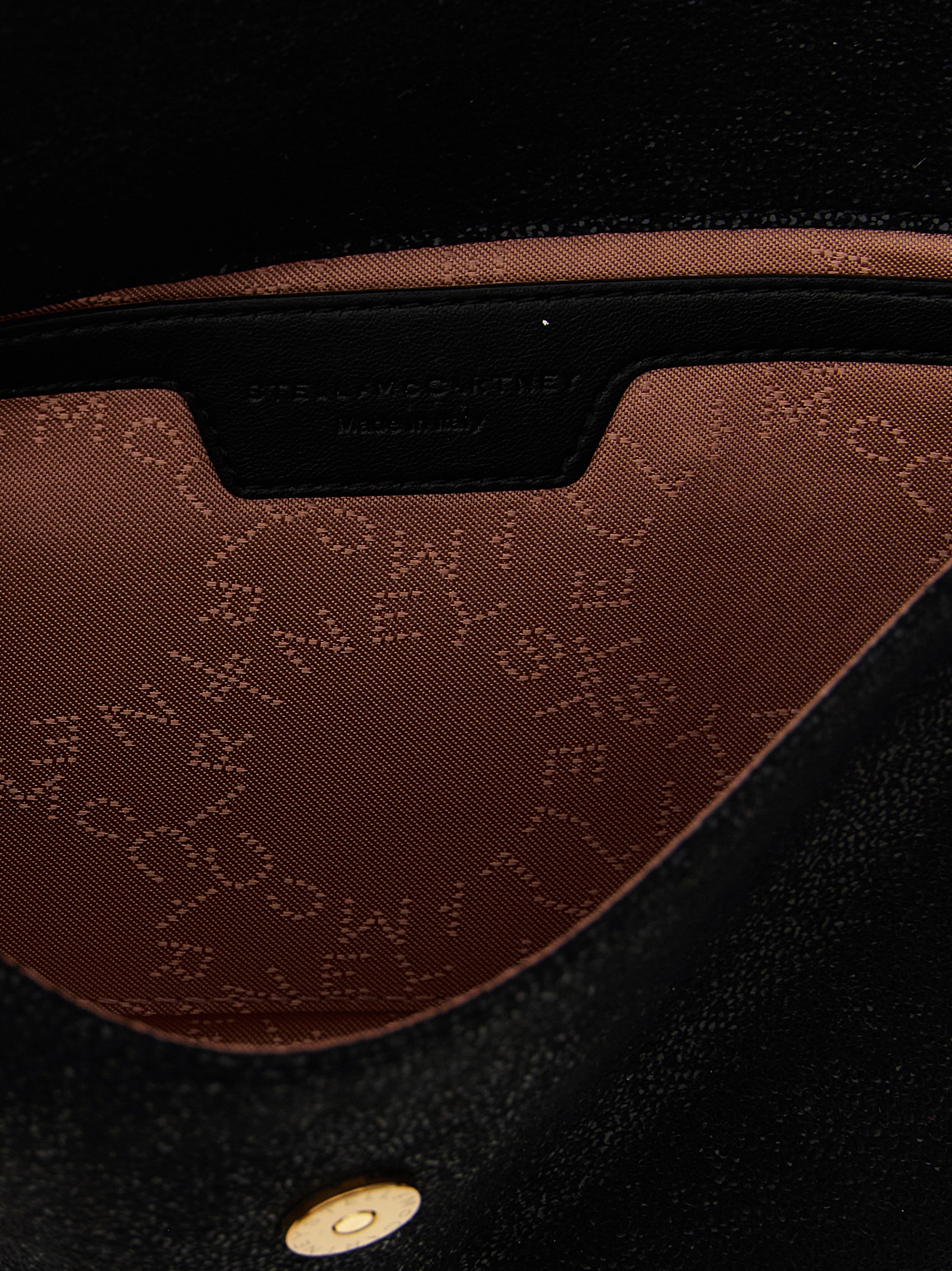 Shaggy Deer vegan fabric wallet on chain with semi-gloss finish, ‘Falabella’ lozenge chain, magnetic flap closure, chain shoulder strap, engraved logo medallion charm.