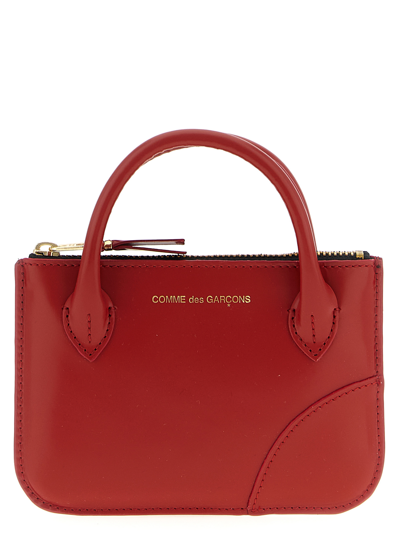 'Handles - SA8100HA' leather coin purse, front embossed logo, double fixed handle, top zip closure.