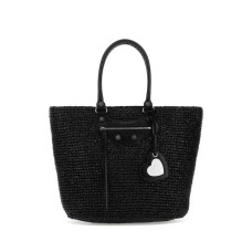 Black raffia large Le Cagole Panier shopping bag Black BALENCIAGA (7861892AA19)