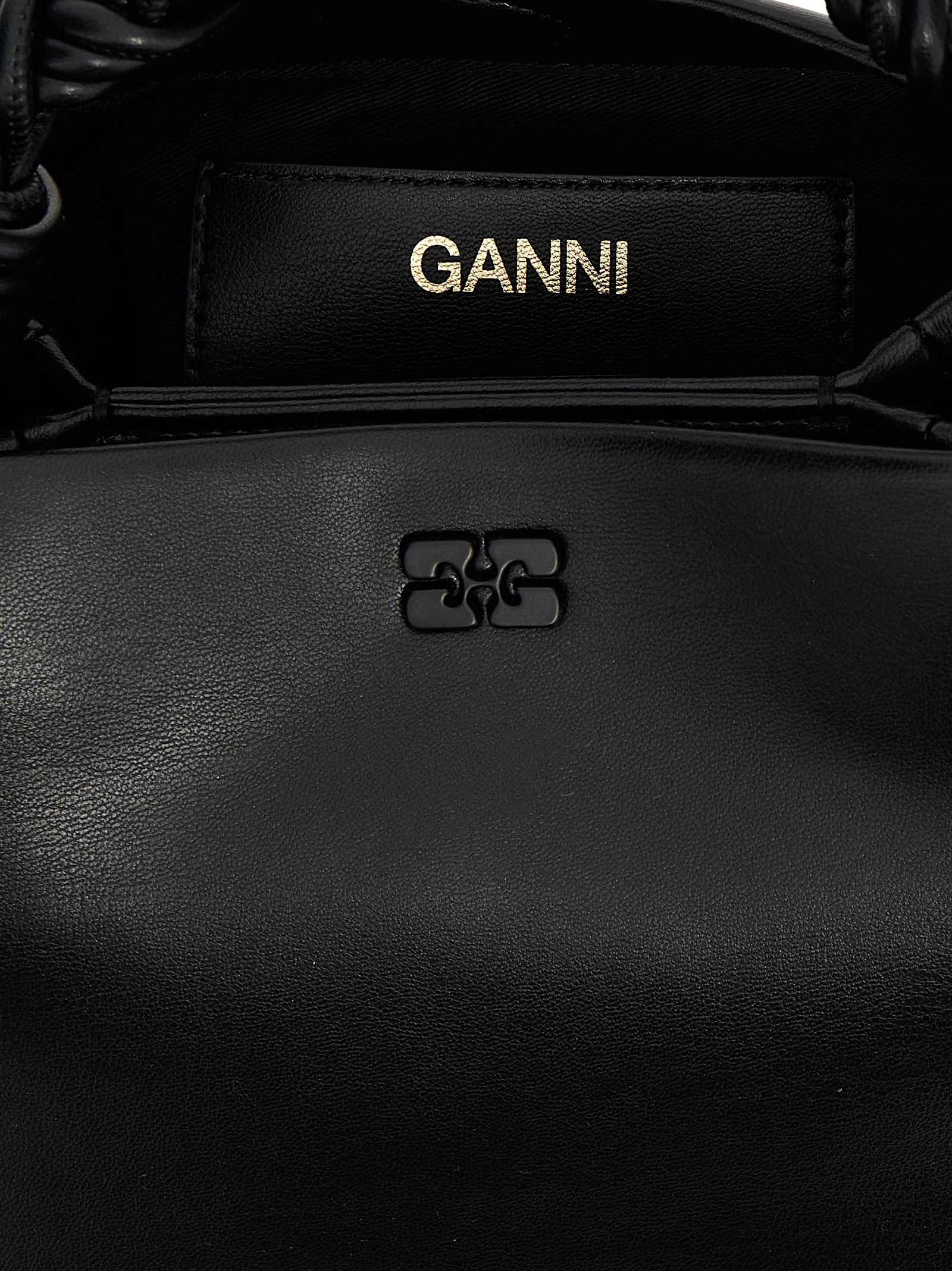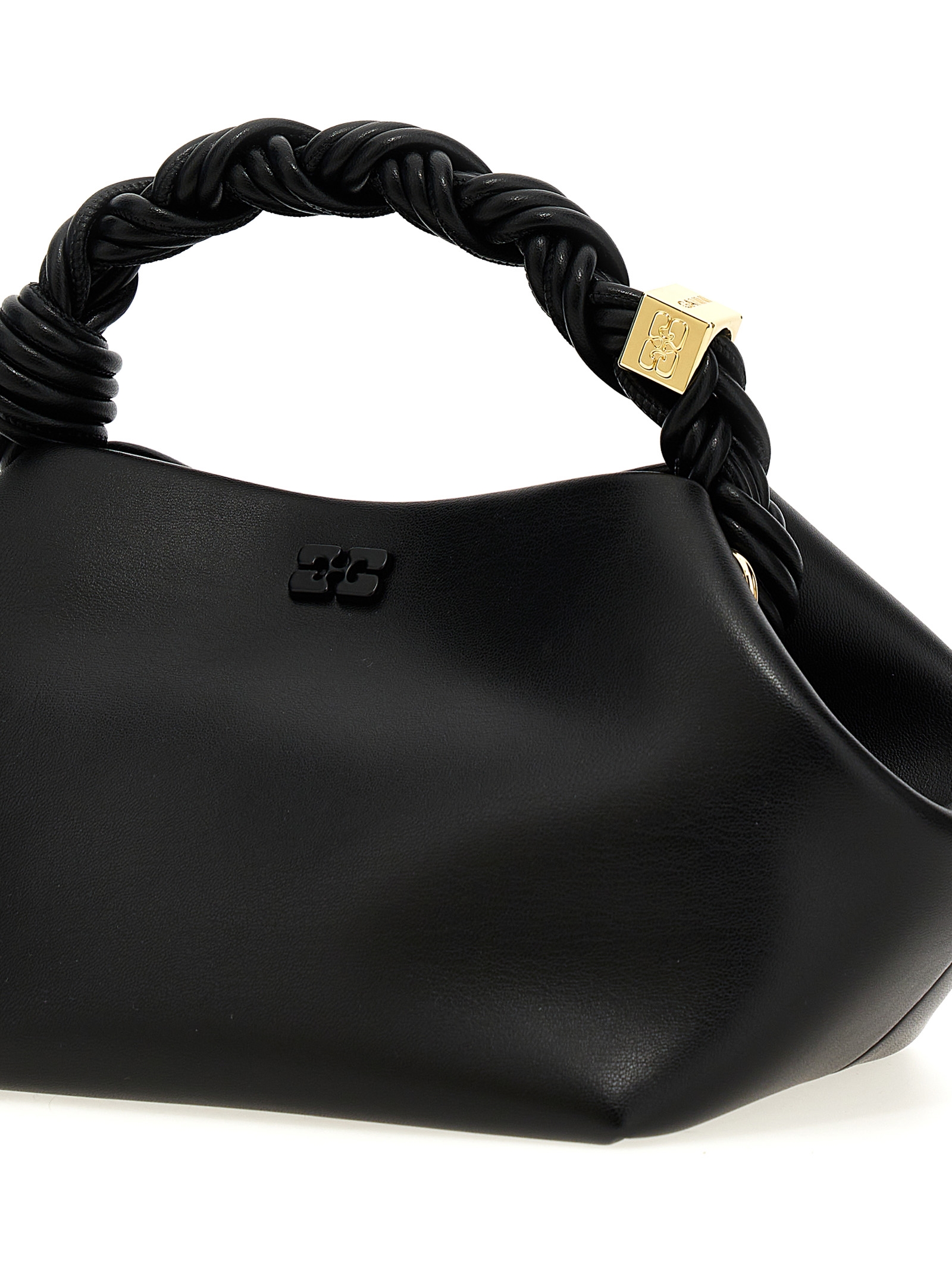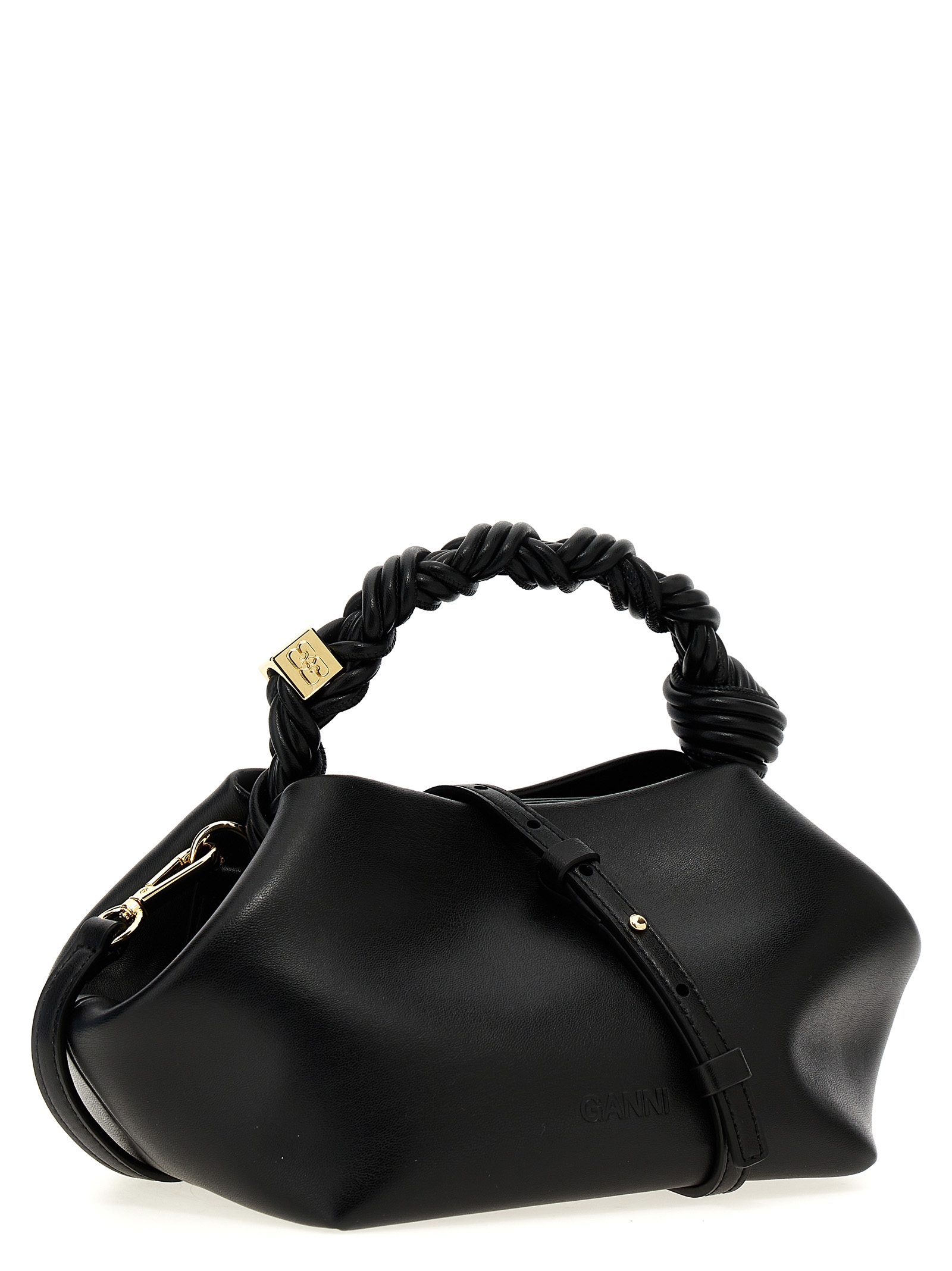 'Bou' handbag in leather-effect fabric with front metal logo, magnetic closure, woven handle with engraved GANNI Butterfly logo, adjustable and removable shoulder strap.