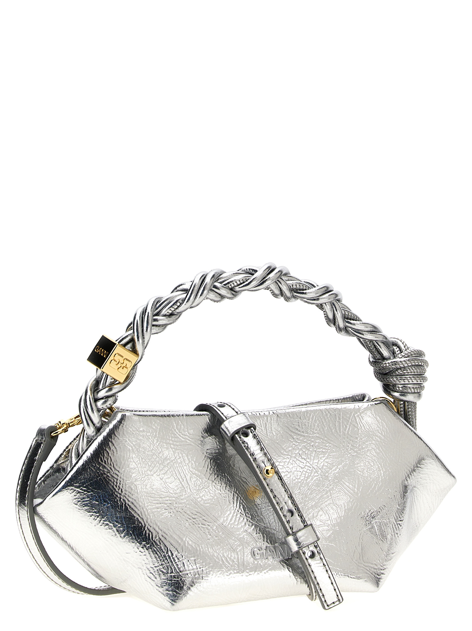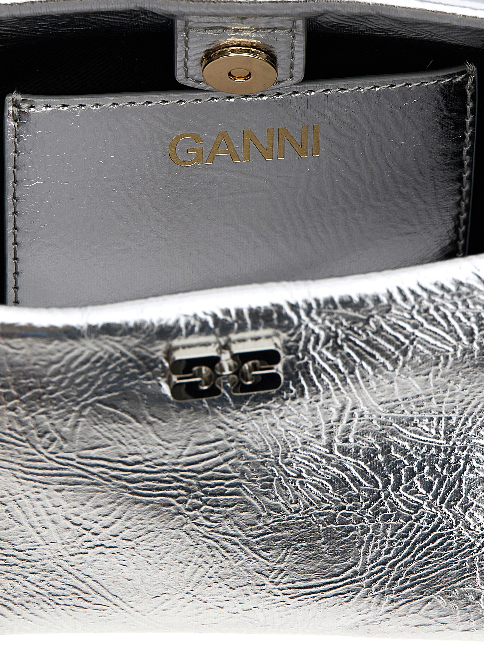 'Bou Bag Mini Metallic' laminated leather handbag with magnetic closure, fixed handle with metal detail, adjustable and removable shoulder strap, front embossed logo.