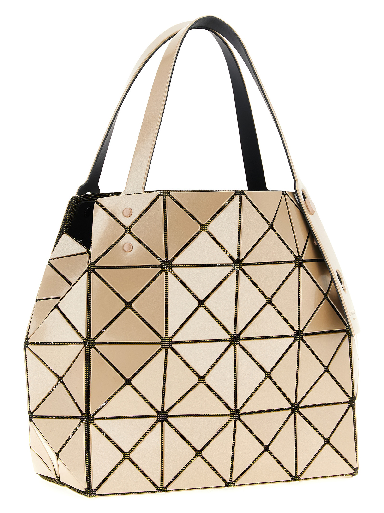 'Carat' large handbag in mesh fabric and pearlescent pvc, double adjustable handle, inner pocket, side gussets.