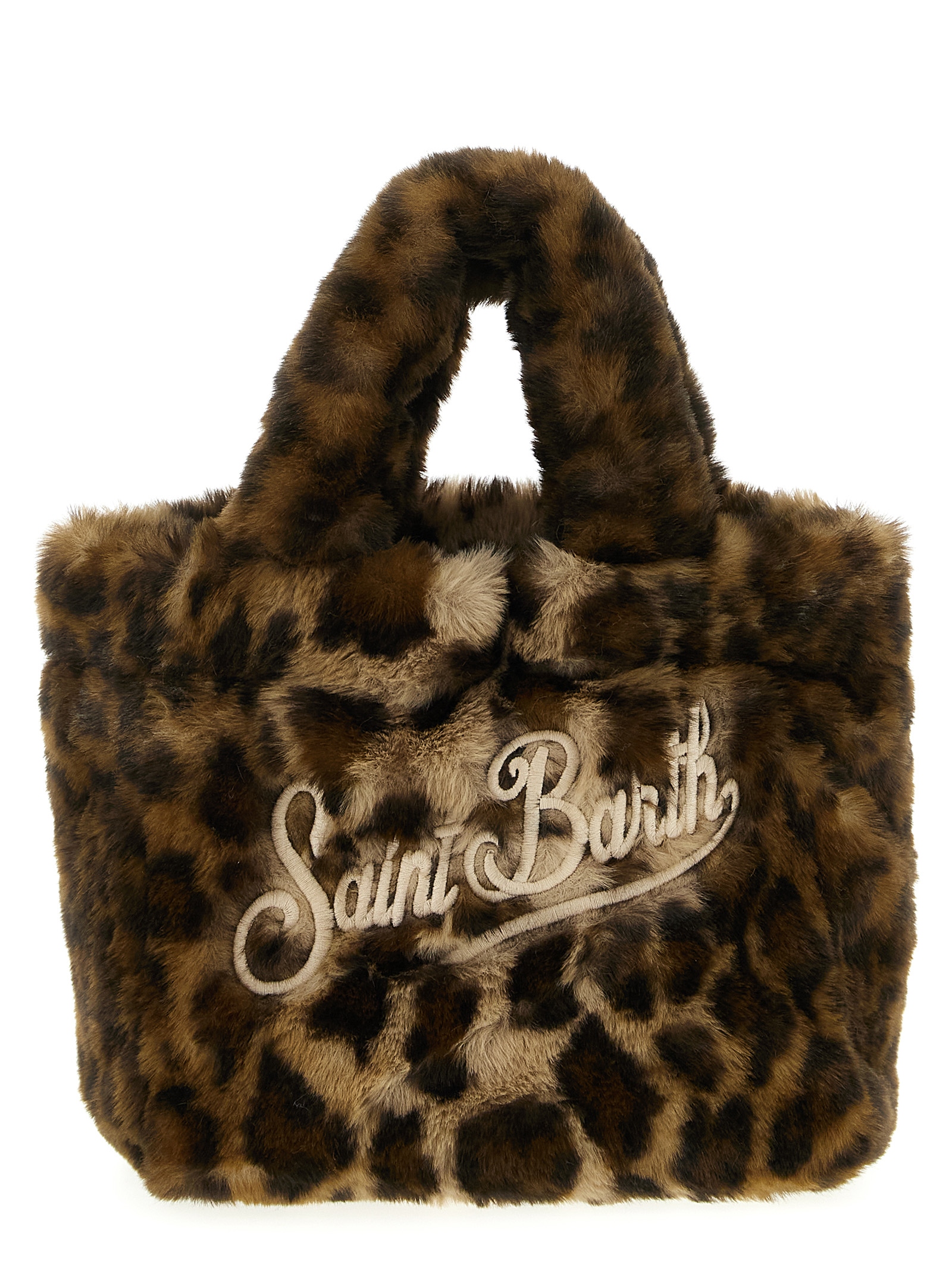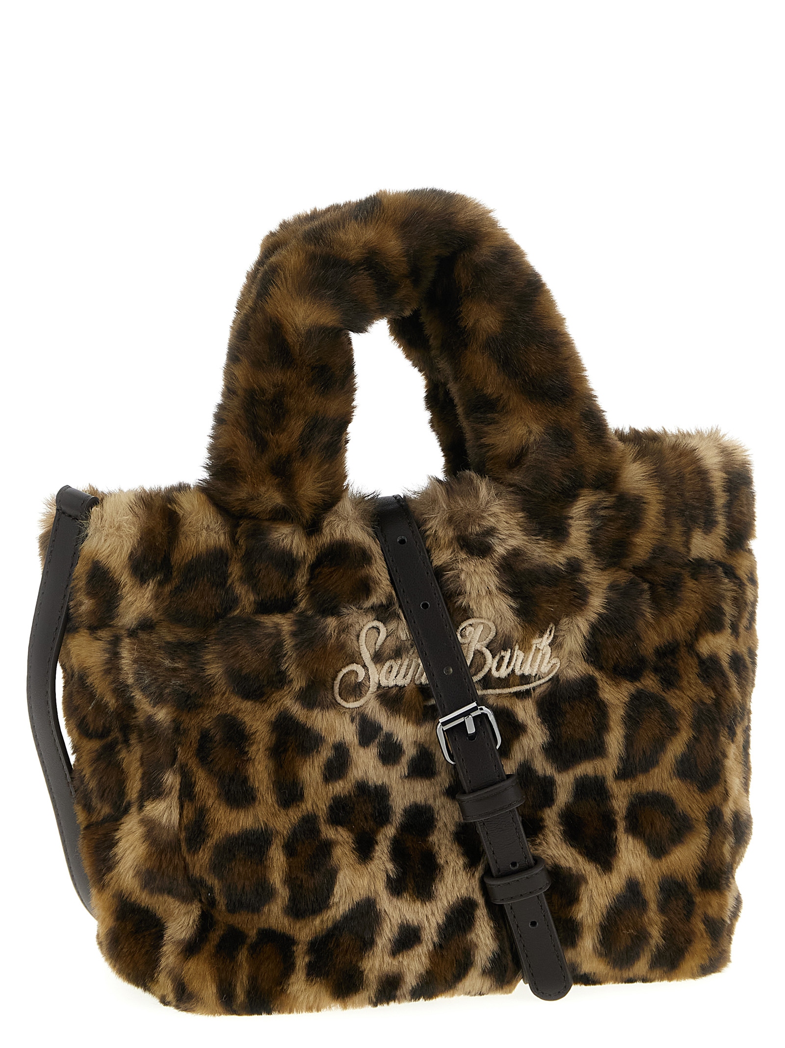 'Vanity Soft Fur' mini handbag in leopard print fur-effect fabric with logo embroidery on the front and back, internal snap button closure, double fixed handle, adjustable and removable shoulder strap, lining.