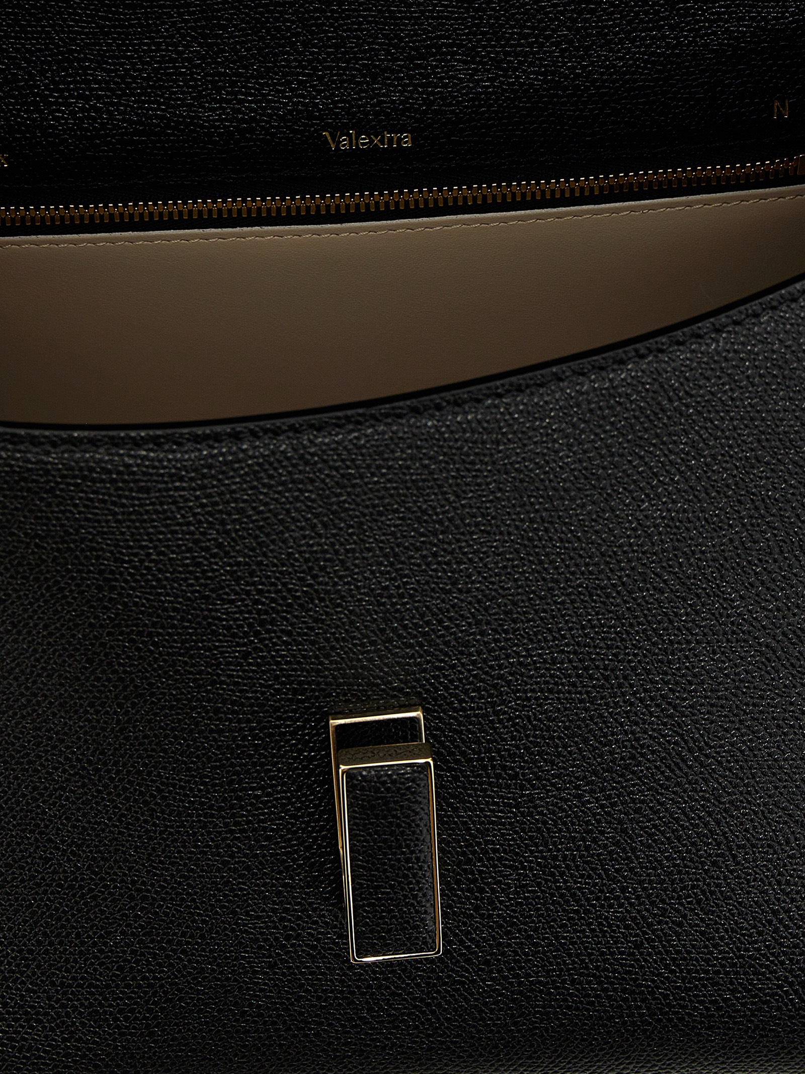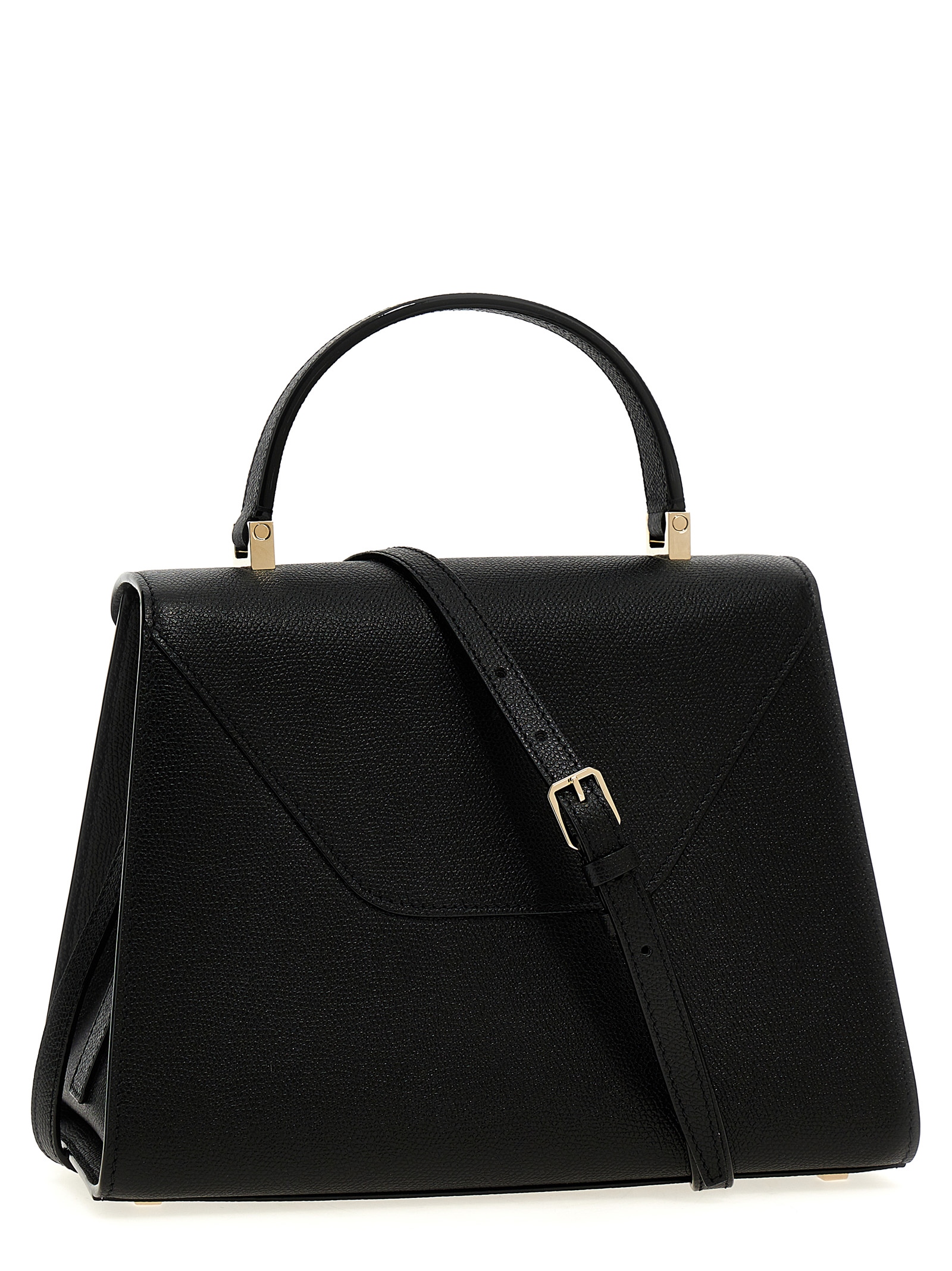 'Iside' medium handbag in Millepunte calf leather, Costa Valextra piping, fixed handle, flap turn-up closure, metal details, adjustable and removable shoulder strap.