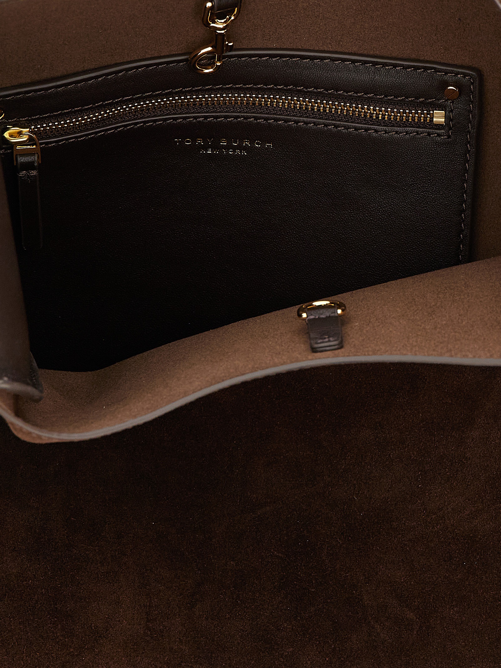 Romy Hobo suede shoulder bag with adjustable handle and inner snap hook closure.