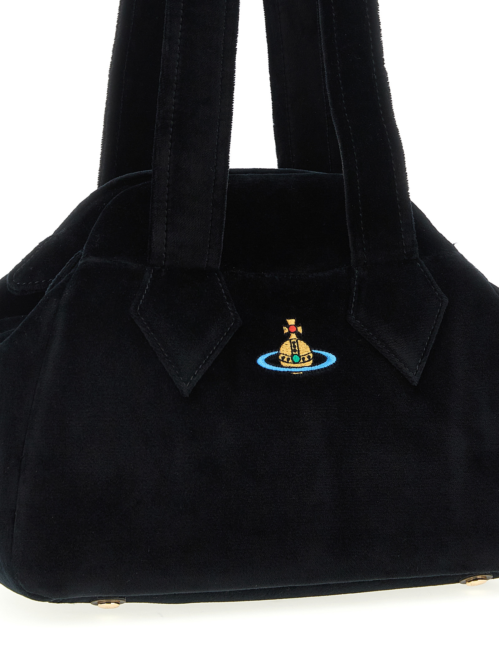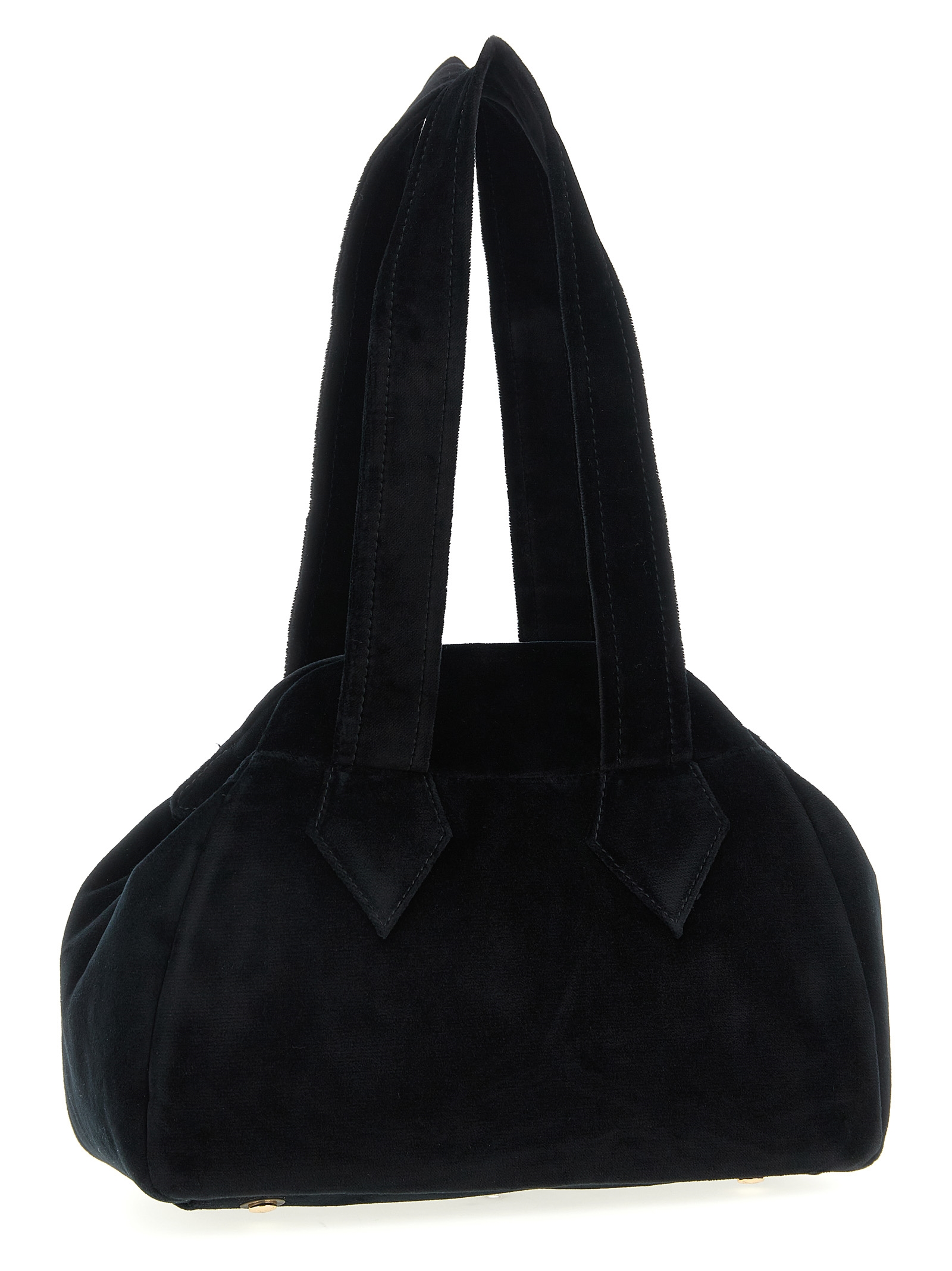 'Archive' medium chenille shoulder bag, front 'Orb' logo embroidery, double fixed handle, snap button closure, rigid bottom with metal feet.