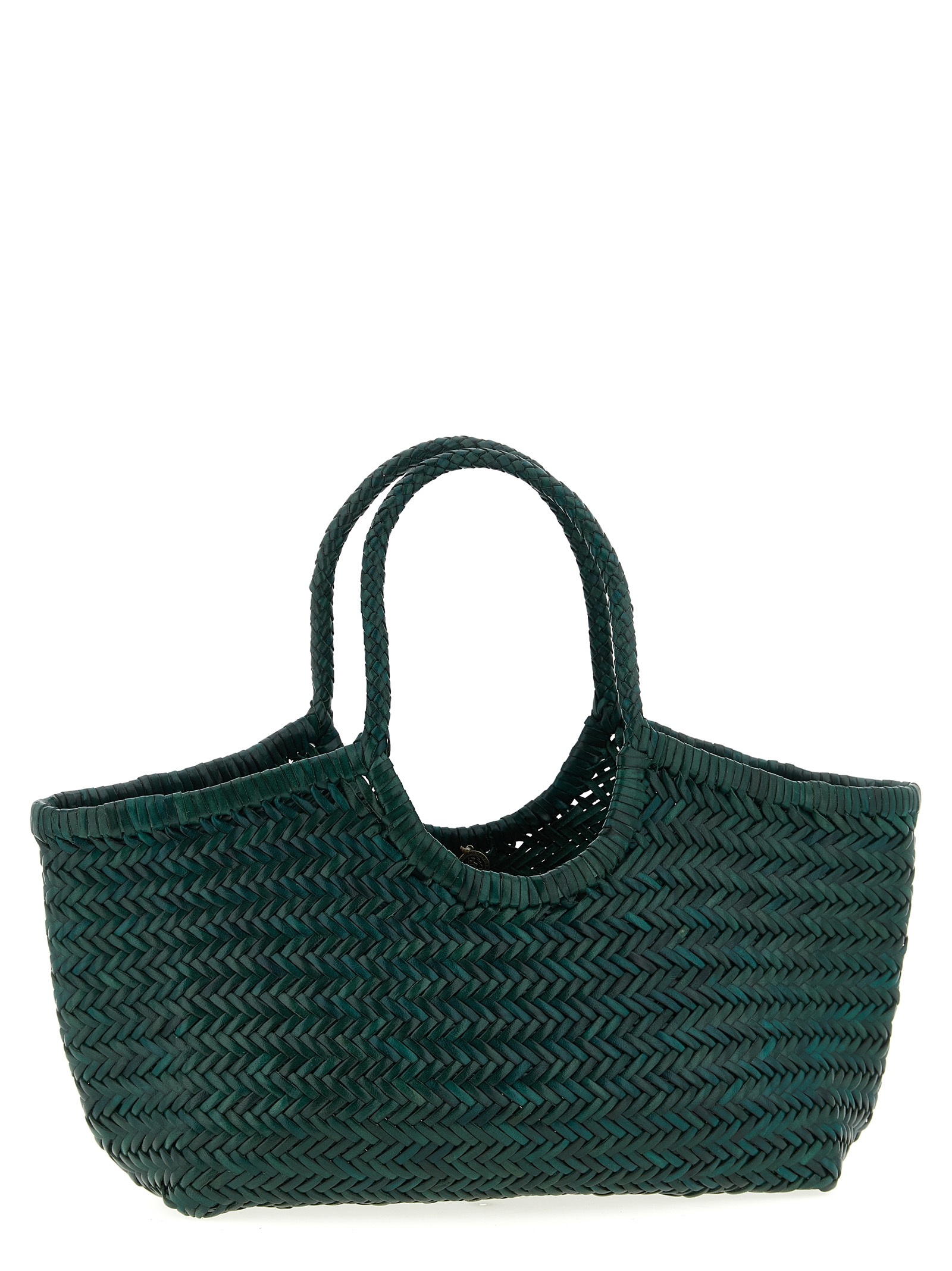 'Nantucket' large hand-woven buffalo leather shoulder bag characterized by basket weaving with narrow knit weave, unlined, double fixed handle.
