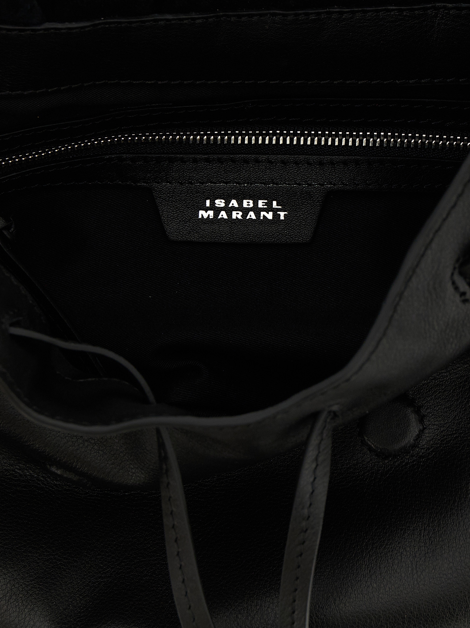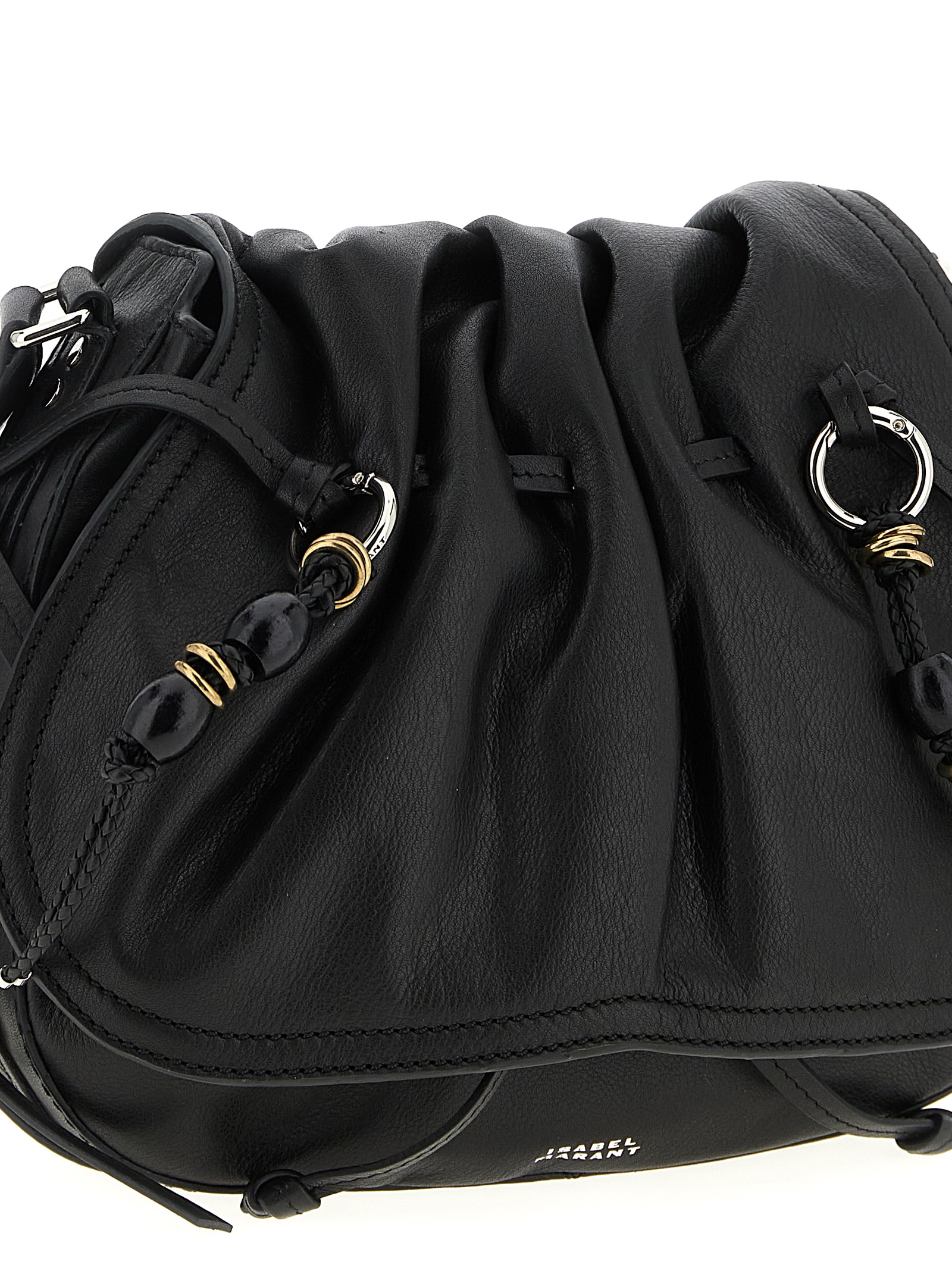 'Bolton' leather shoulder bag, magnetic flap closure with crinkled flap and lace with removable decorations, front embossed logo, inner drawstring, adjustable shoulder strap, shoulder strap with removable metal details.