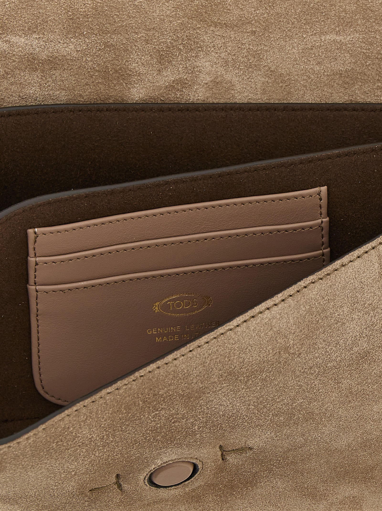 Tse Tracollina mini suede shoulder bag, flap with front metal 'T timeless' detail and magnetic closure, removable handle and adjustable and removable leather shoulder strap,