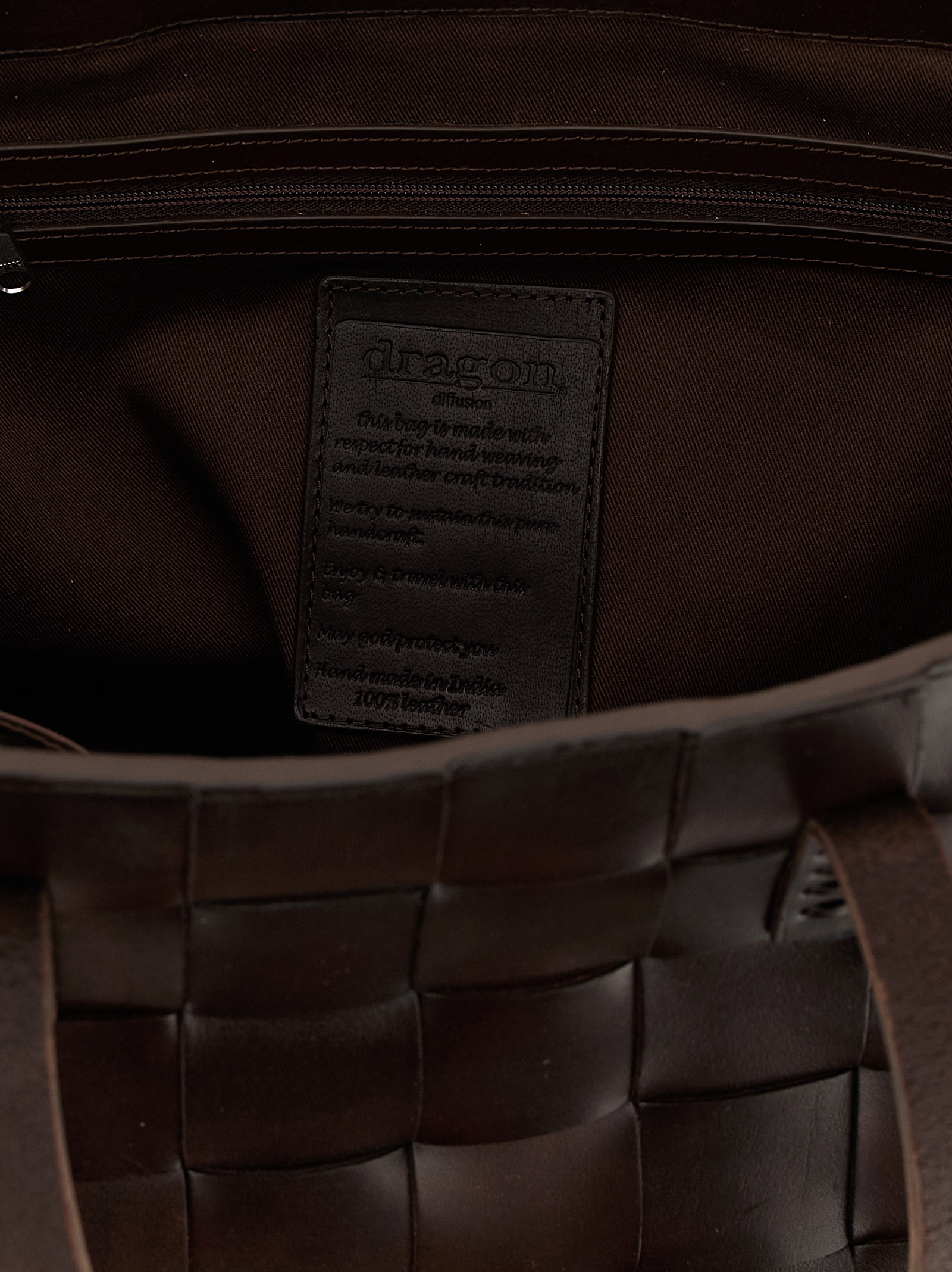 'Japan Tote' hand-woven buffalo leather shopping bag, cotton lining, double fixed handle.