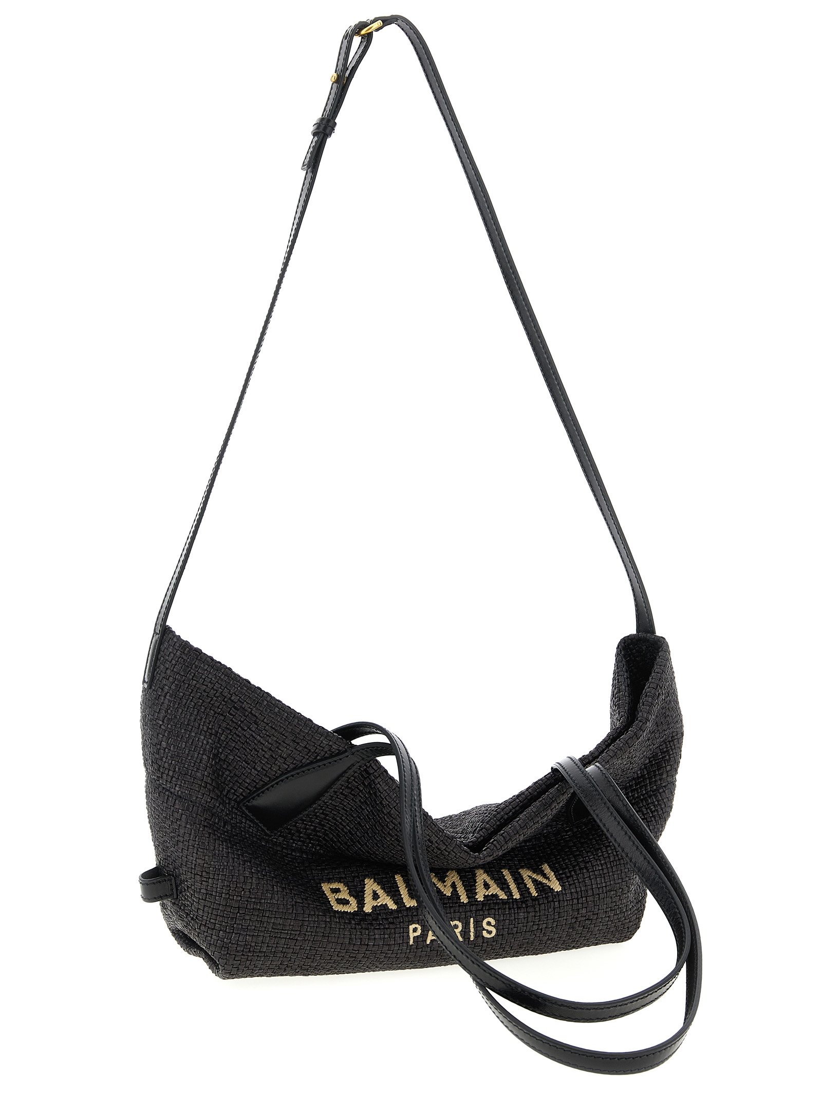Shooping 'Track-small rafia', double fixed leather handle and adjustable leather shoulder strap, front logo embroidery, magnetic closure