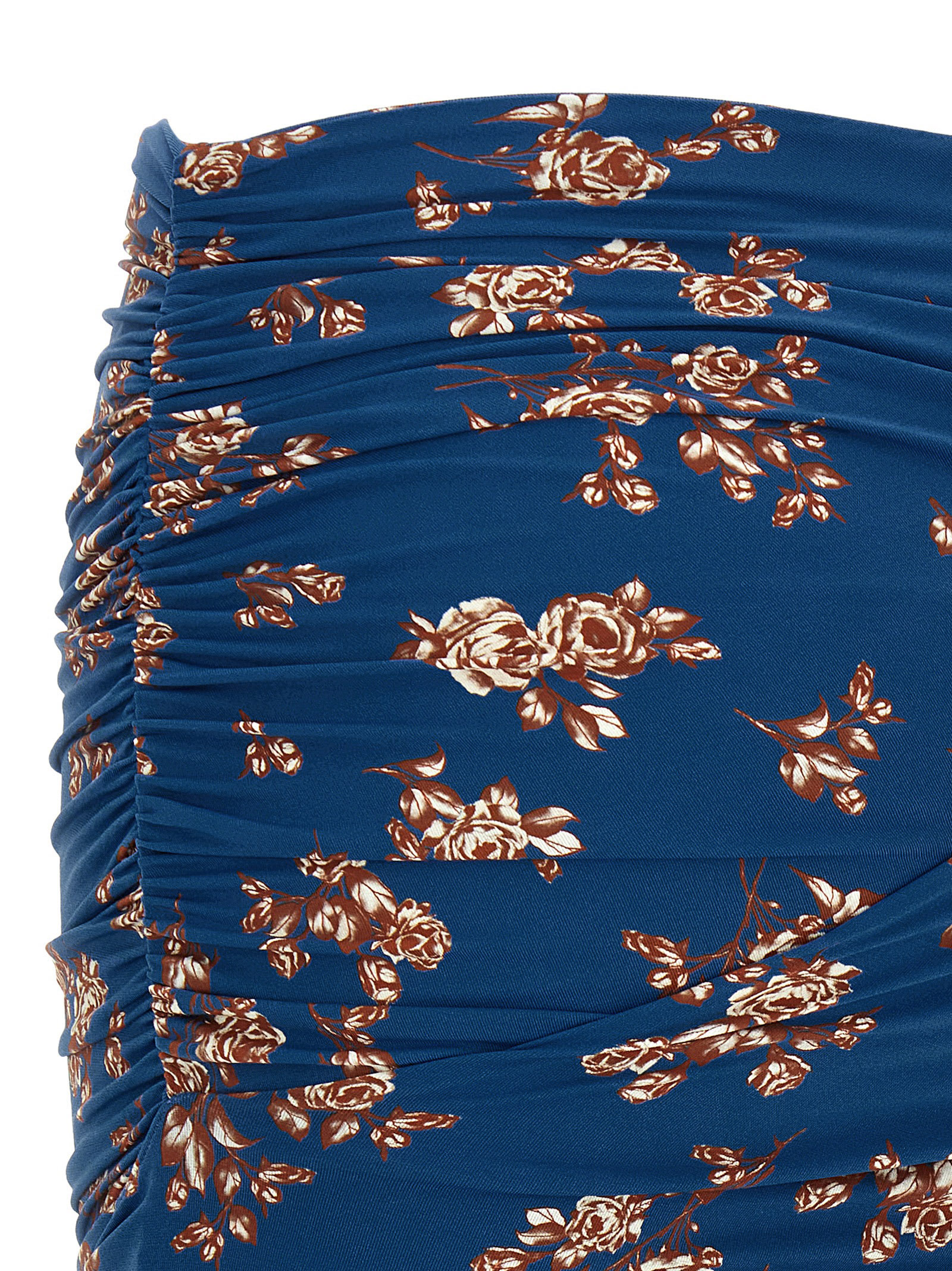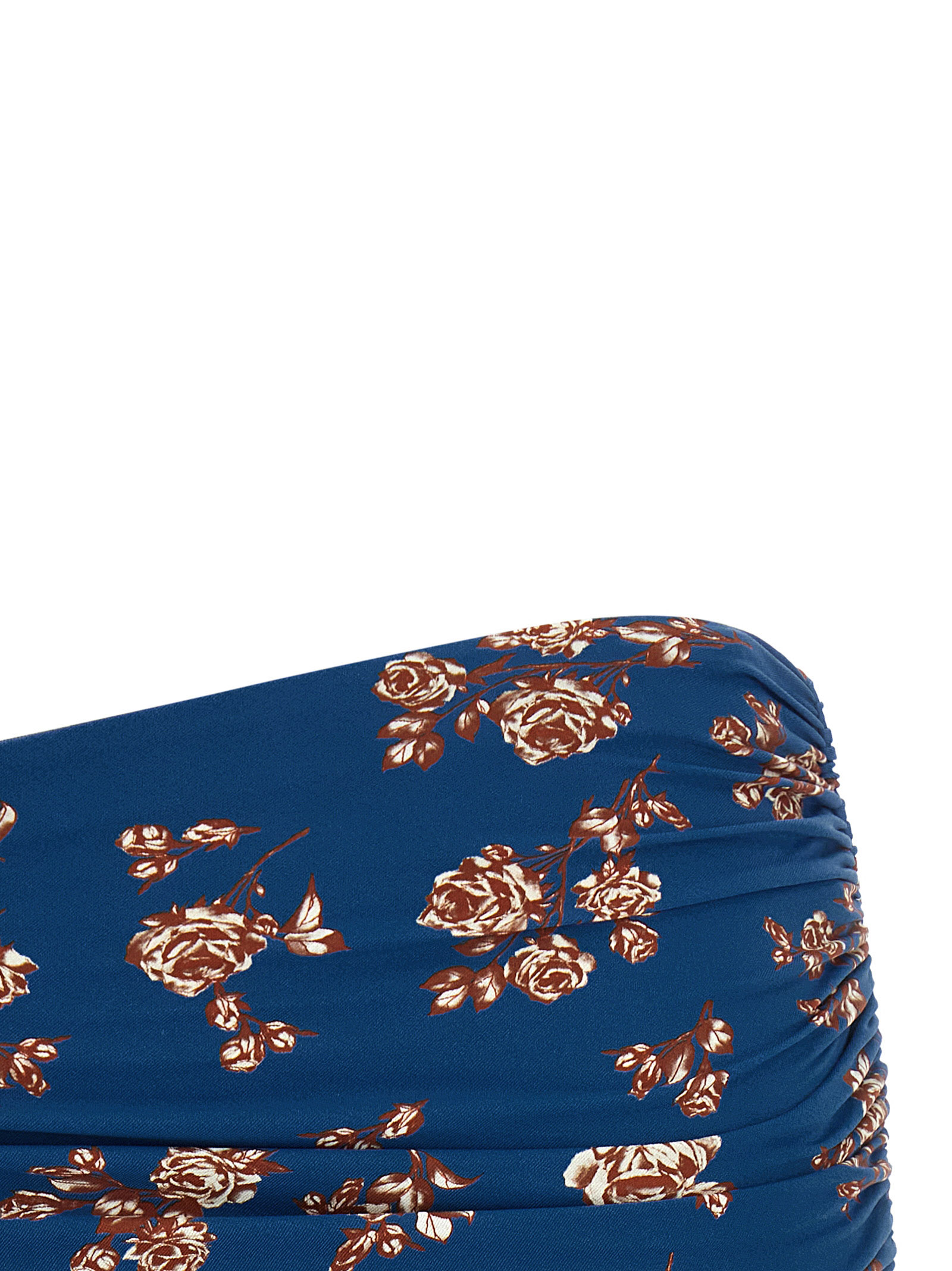 '01' swimsuit skirt in stretch technical fabric with floral print curled on the sides and waist.