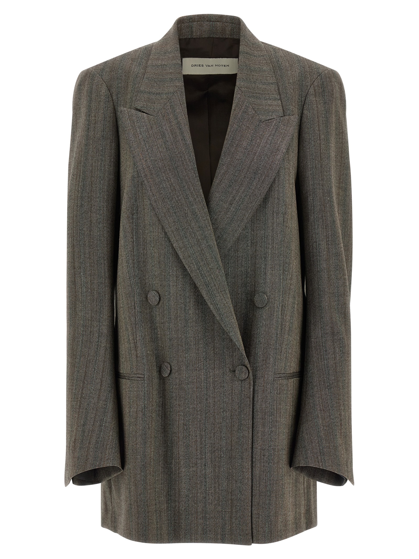 'Blink' double-breasted striped wool blazer with front button closure, mirror lapels, patch pockets, structured shoulder strap, long sleeves, viscose lining.