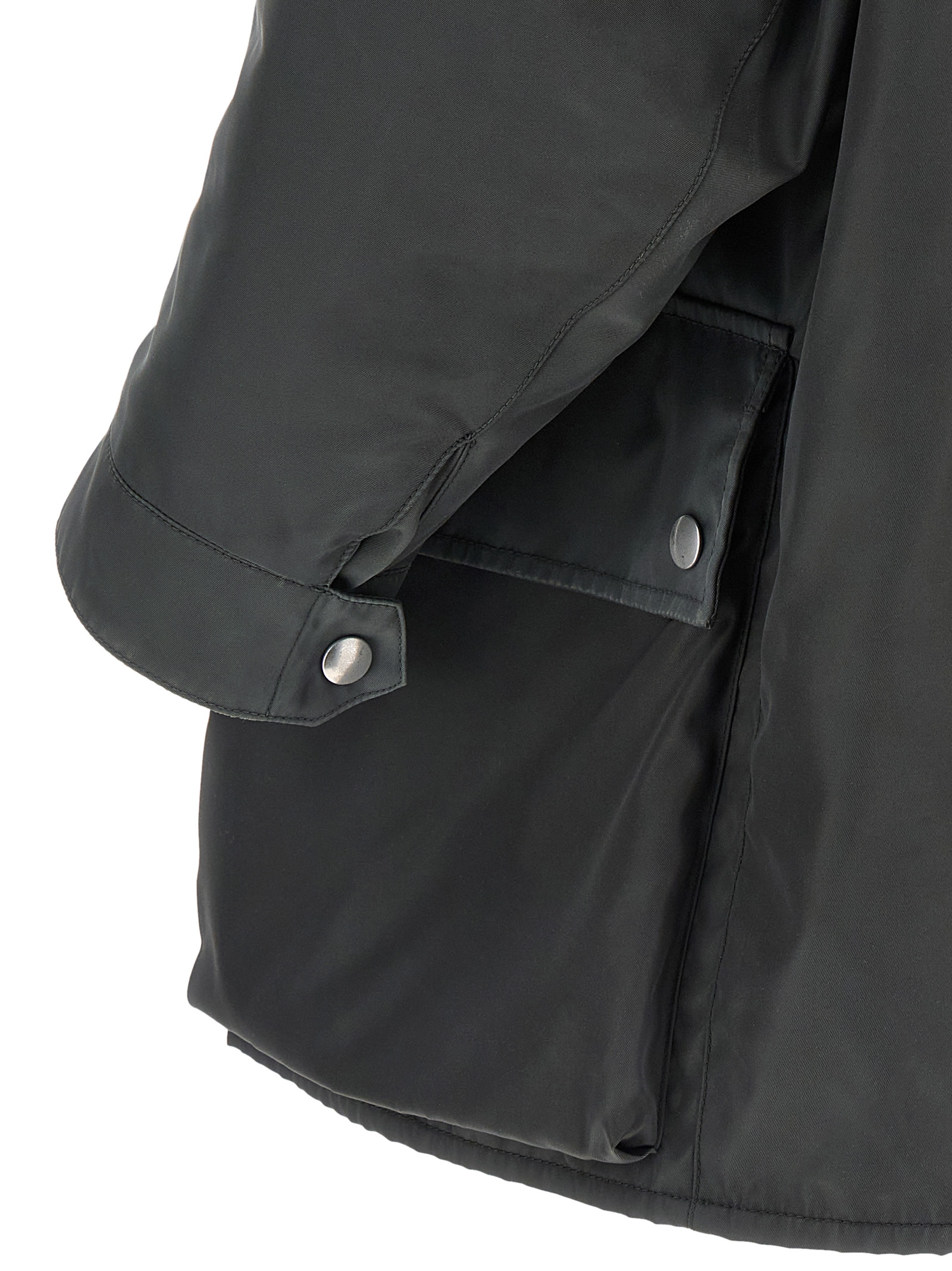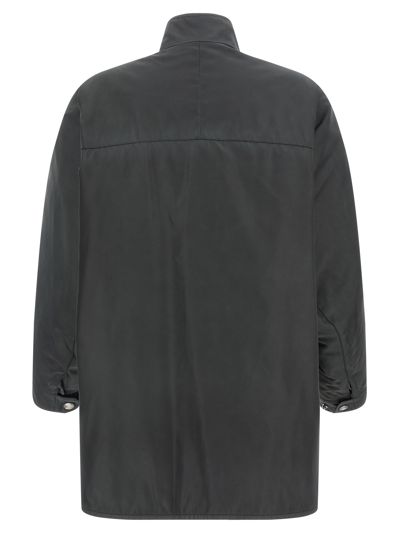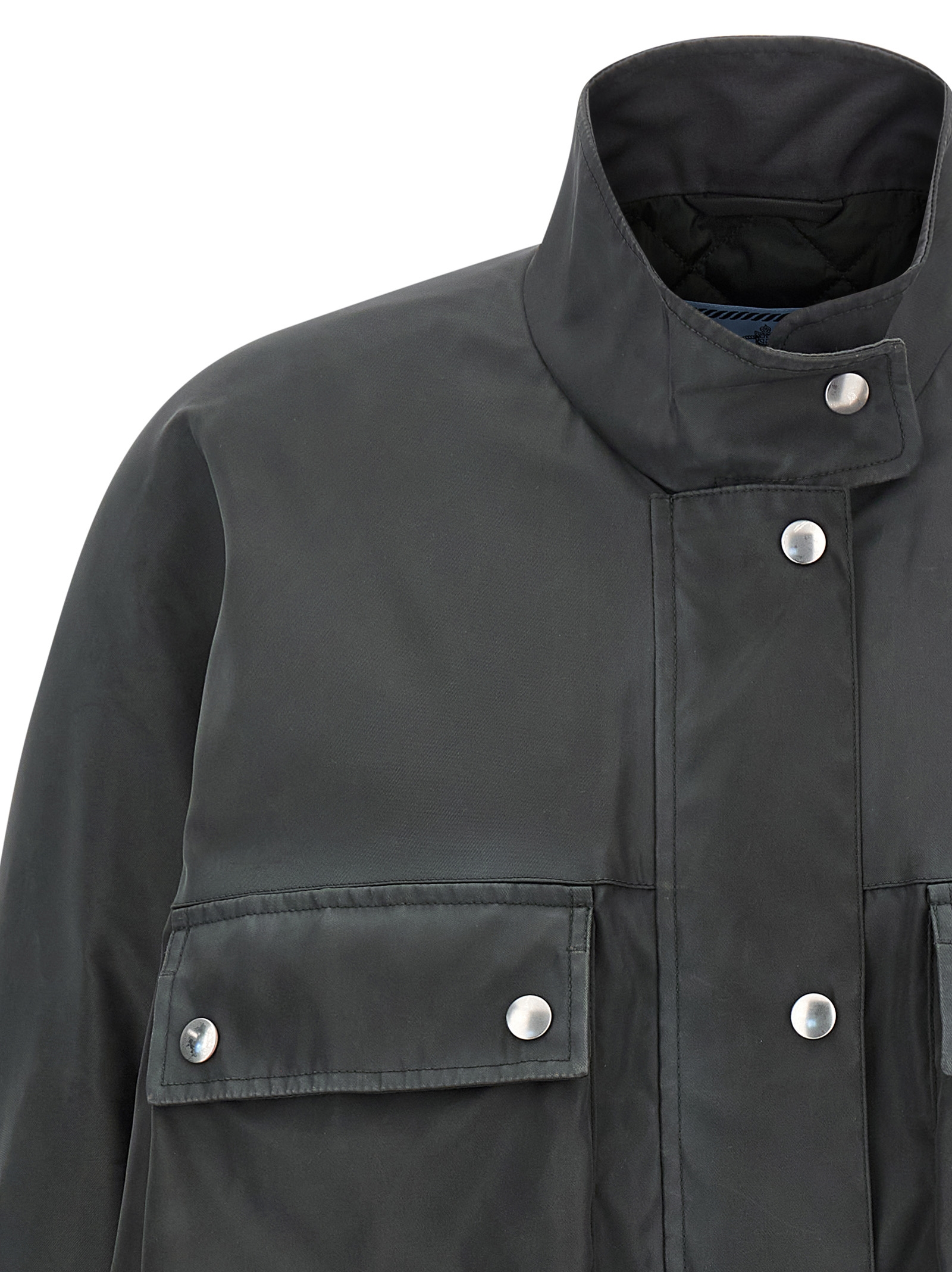 Re-Nylon waterproof jacket with antique finish, straight model with quilted lining, raised collar, zip and snap buttons, front flap and snap pockets, front lettering logo, long sleeves with adjustable cuffs with tongue and automatic.