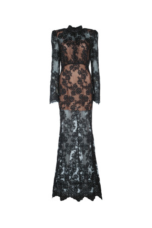 Black stretch viscose blend long dress BALMAIN (FF0RP900JL05)