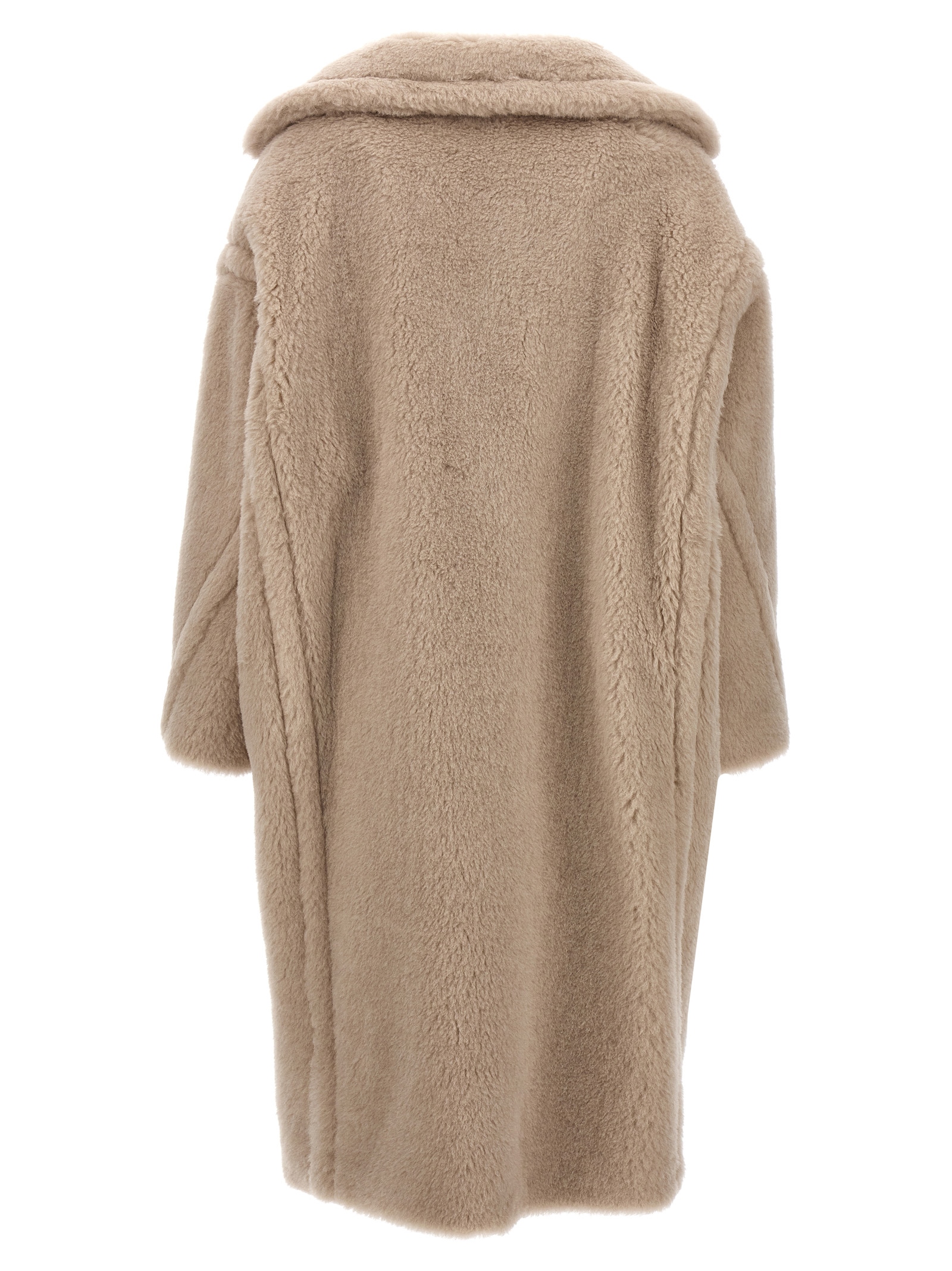 'Tedgirl - Teddy Bear Icon' faux fur-effect alpaca and wool coat, double-breasted style with front horn button closure, lapel collar, pockets, long sleeves with dropped shoulders, monogram viscose lining.
