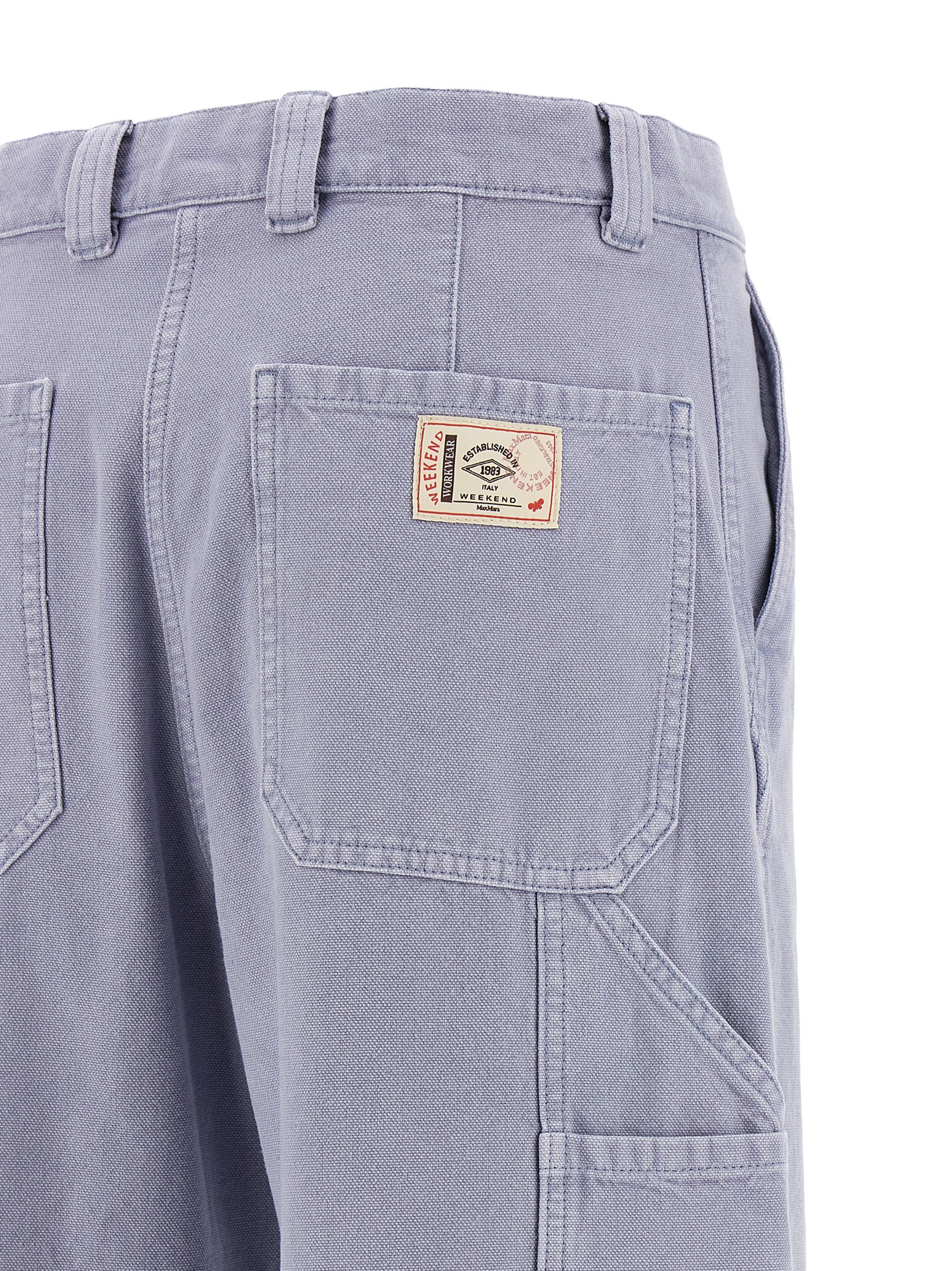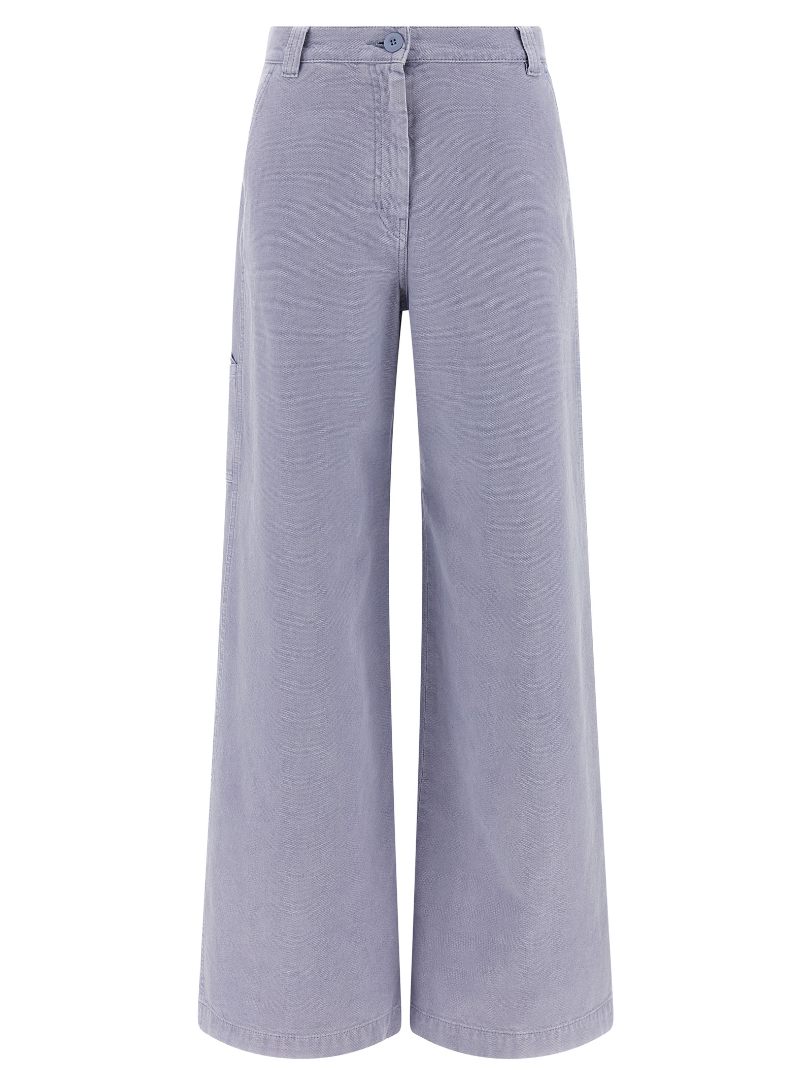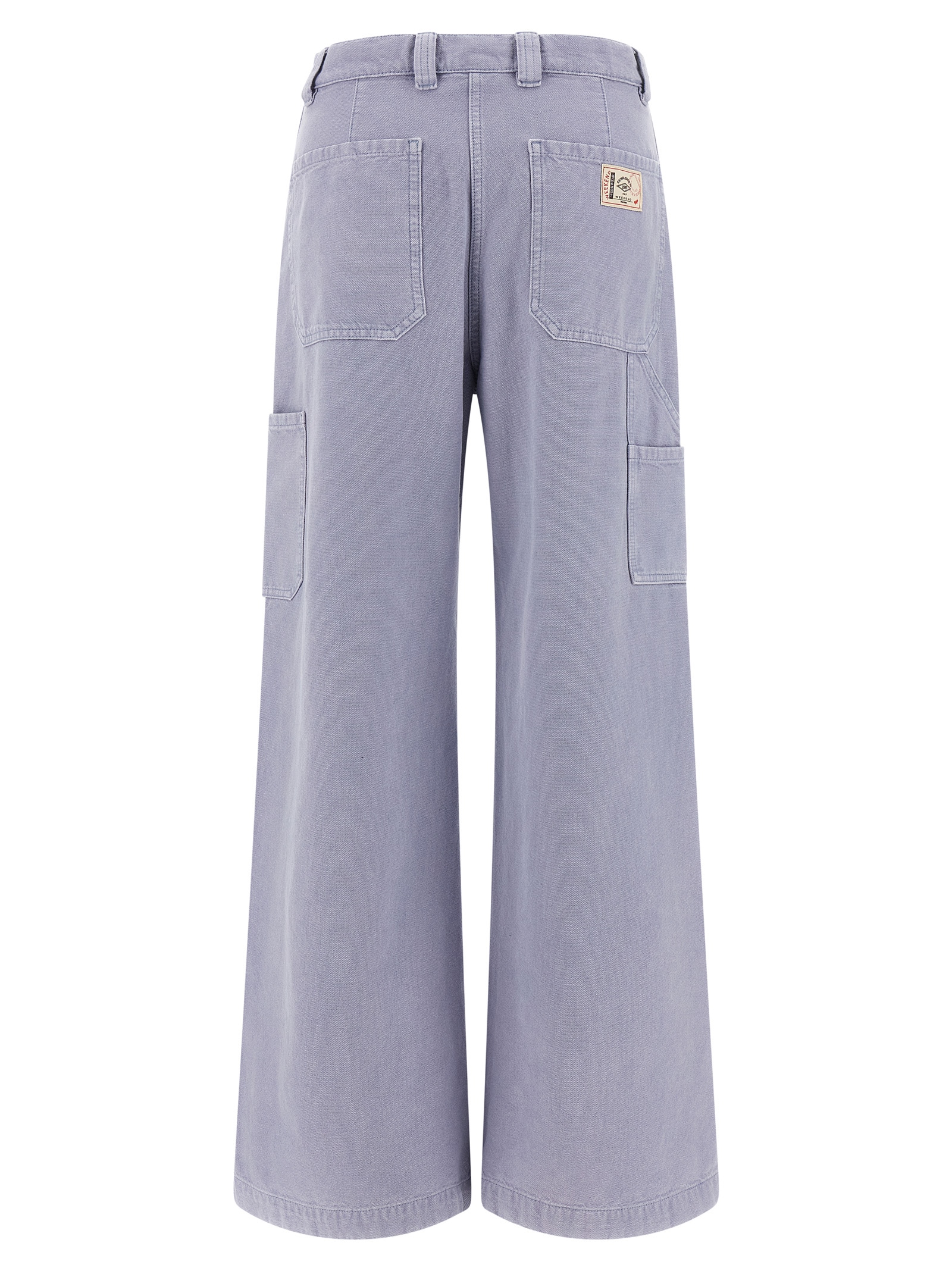 'WkdSkipper' cotton canvas trousers, workwear model, wide and wide leg, mid waist, zip and front button closure, pockets.