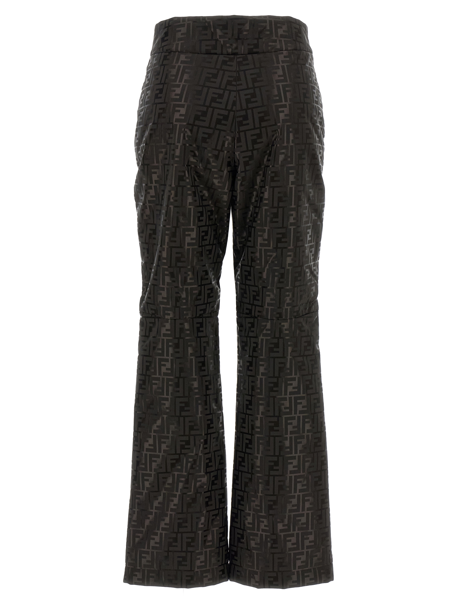 Ski pants in technical fabric with 'FF' pattern, high waist, tight fit, front stitching, front zip closure, side zip on the leg bottom.