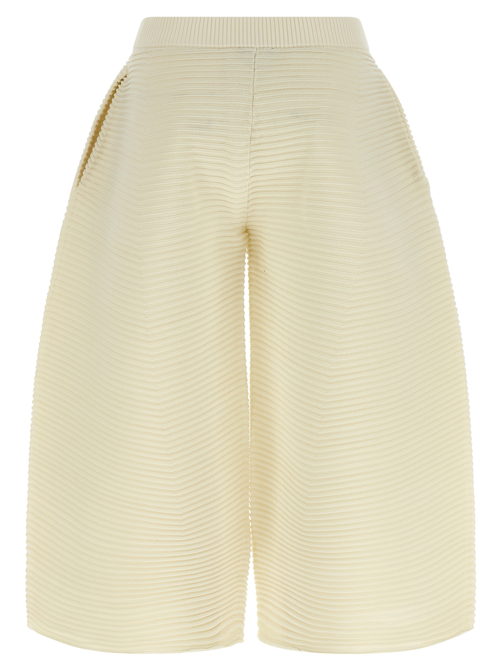 'Corrugated Knit' cropped pants in ribbed fabric with curved wide leg, elastic waistband, side pockets.