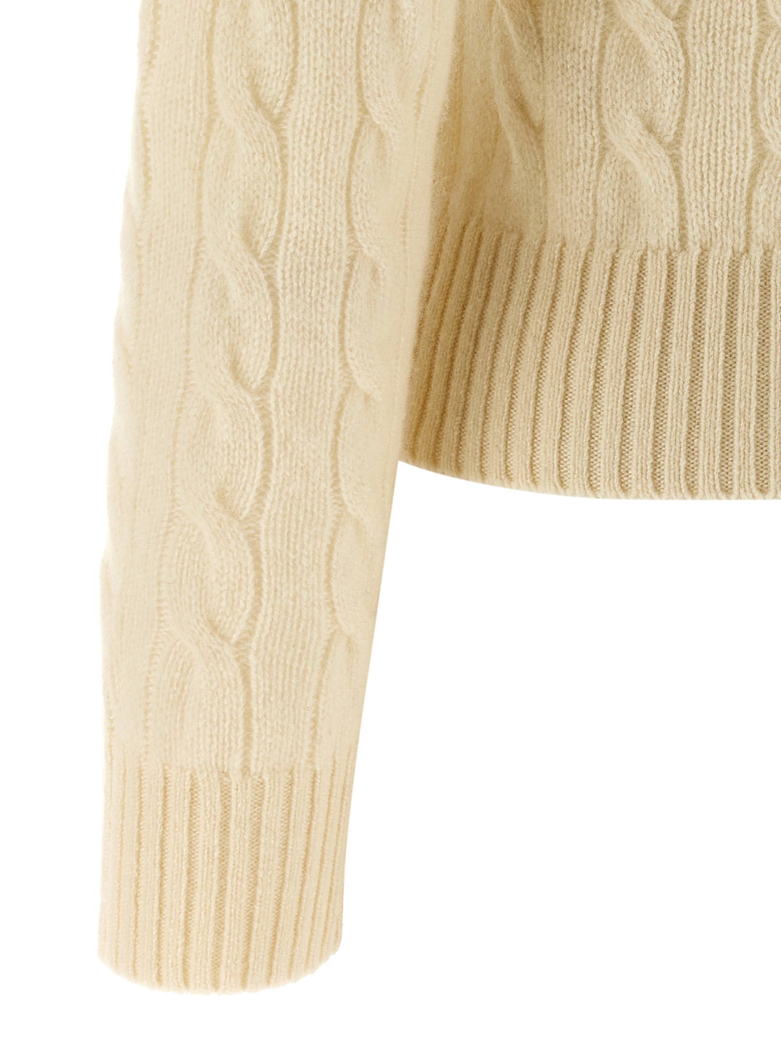 Braid wool and cashmere blend polo shirt, front logo embroidery, collar and buttons, long cuffed sleeves.