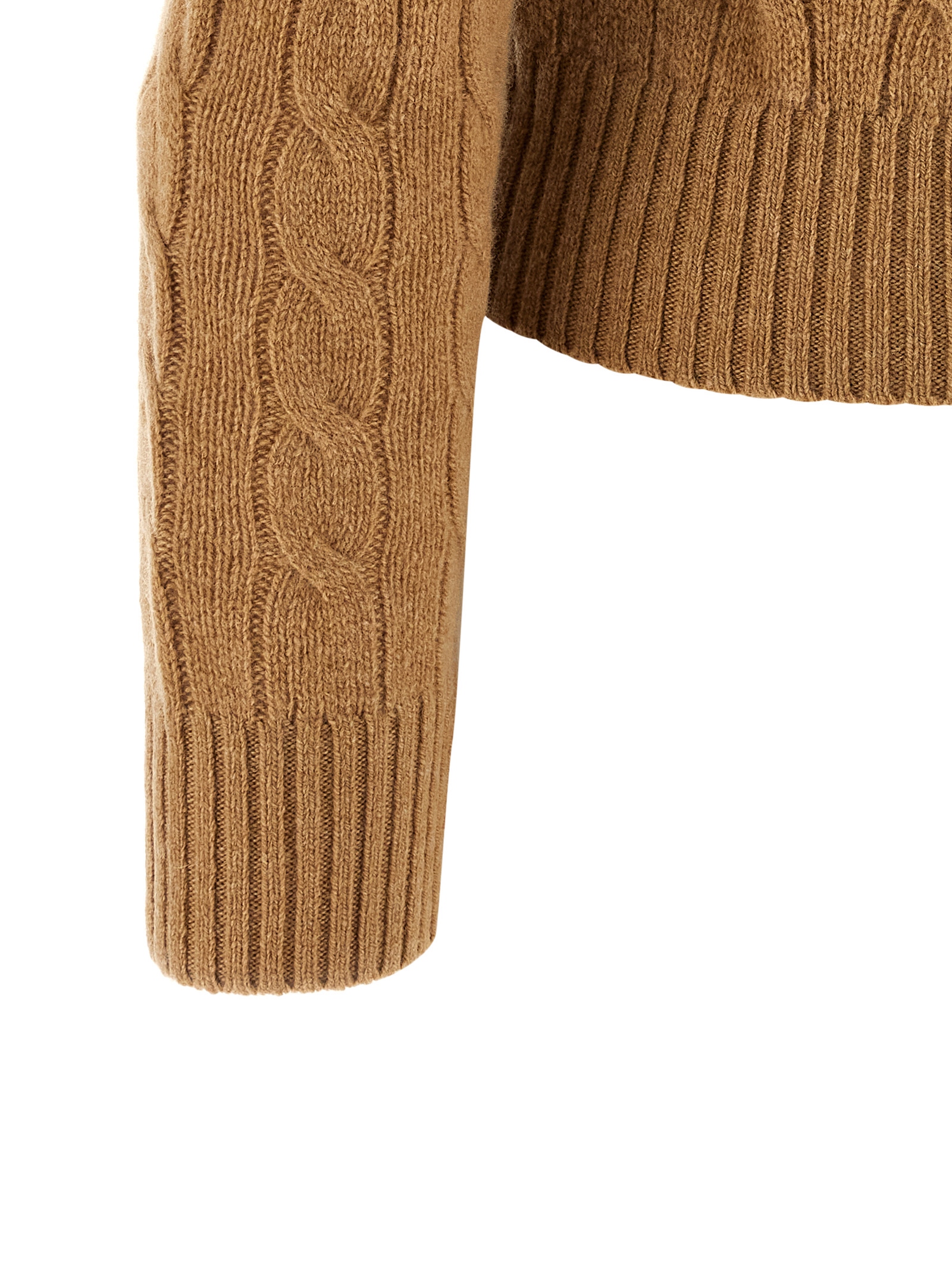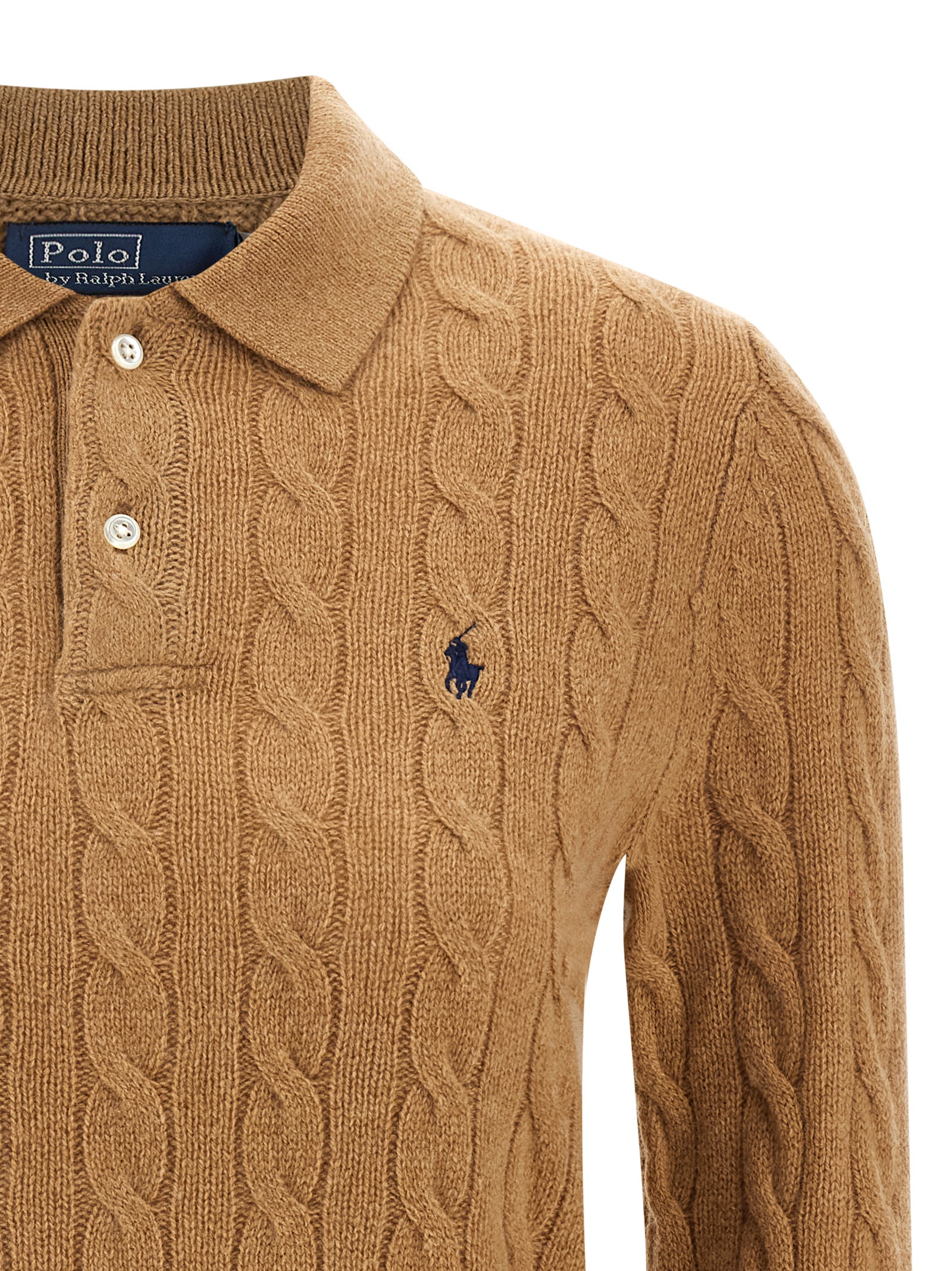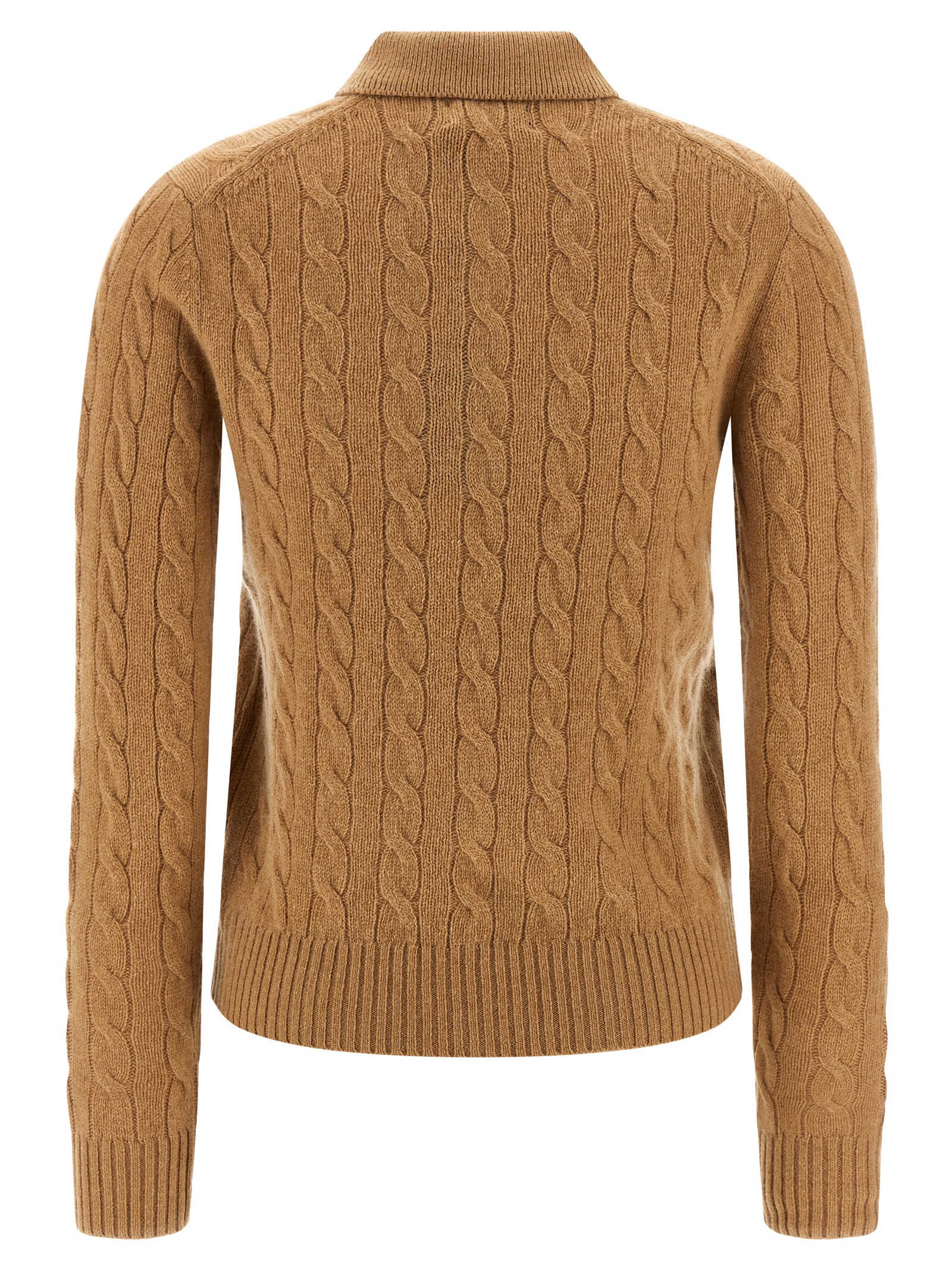 Braid wool and cashmere blend polo shirt, front logo embroidery, collar and buttons, long cuffed sleeves.
